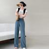 Otoño 2025 Amazon Nuevo Estilo Europeo y Americano Color-Block Cintura Alta Lavado Moda Jeans Acampanados para Mujer