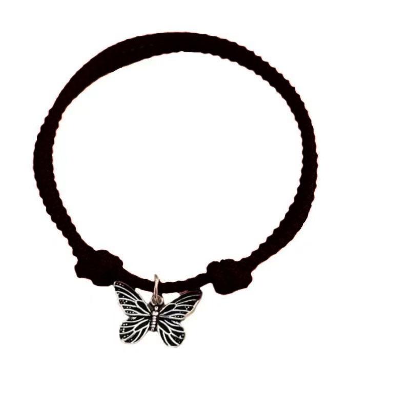 Wine red rope silver dish butterfly, Black Rope Silver Disc Butterfly