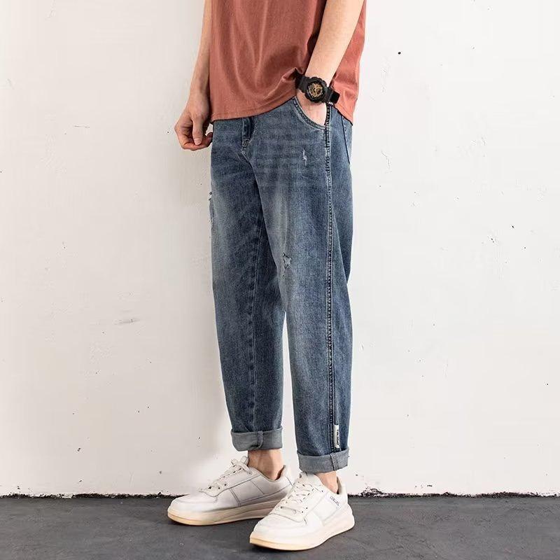 Jeans de Verano para Hombre Nuevos Rectos Sueltos Modernos Casuales Pantalones de Hombre Pantalones Recortados para Niños