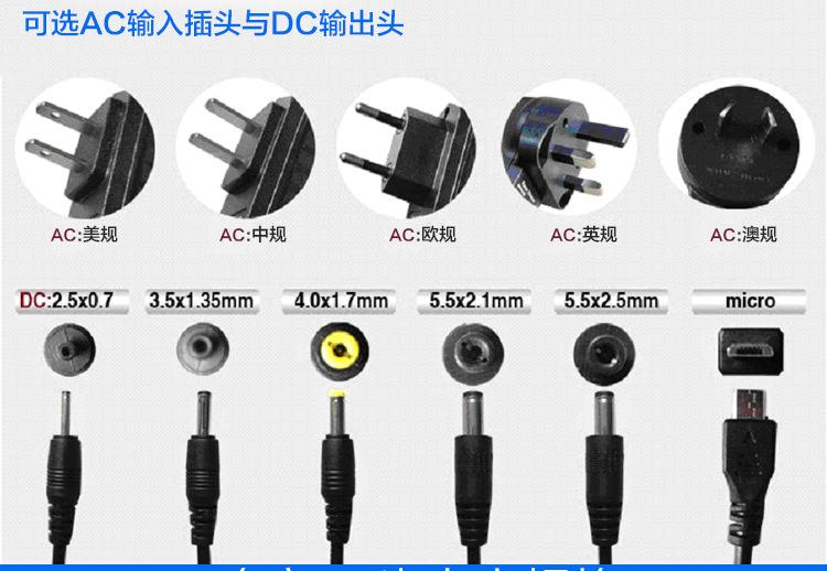 Interfaz: Predeterminado 5.5*2.1mm, 3.5*1.35mm o 4.0*1.7mm, ¡recuerde indicarlo al realizar el pedido!