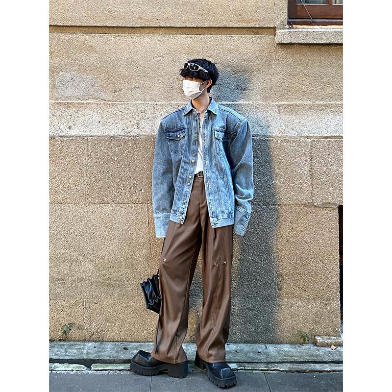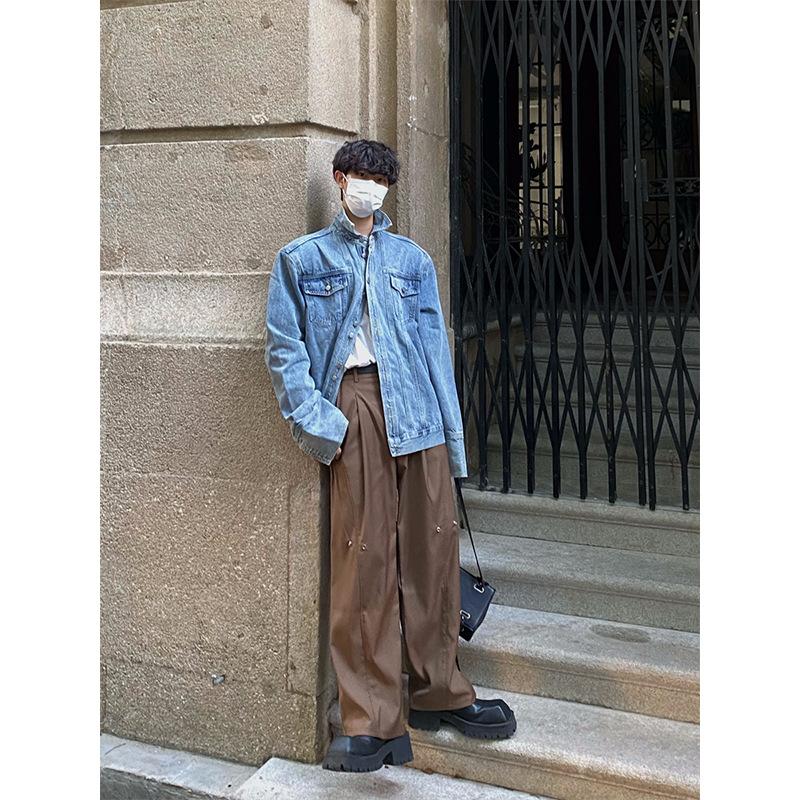 Pantalones de color liso para otoño e invierno, pantalones casuales rectos y sueltos para hombre, pantalones de moda de estilo coreano.