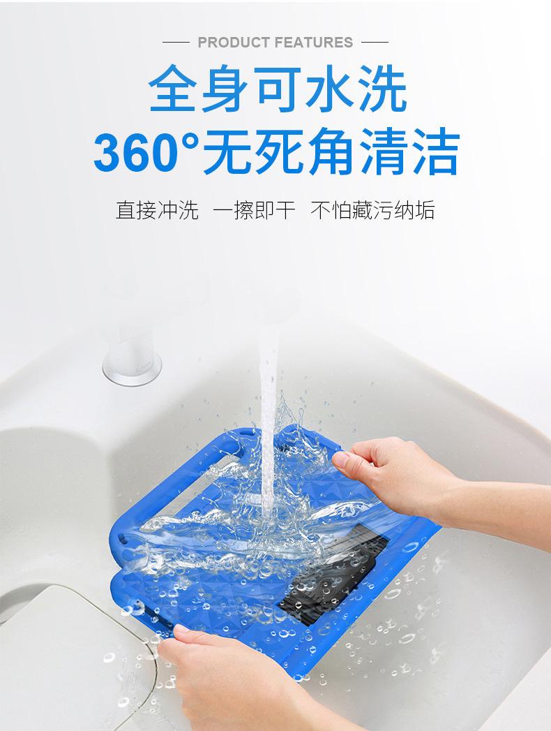 • Se puede enjuagar directamente con agua, limpio e higiénico sin esquinas muertas, duradero.