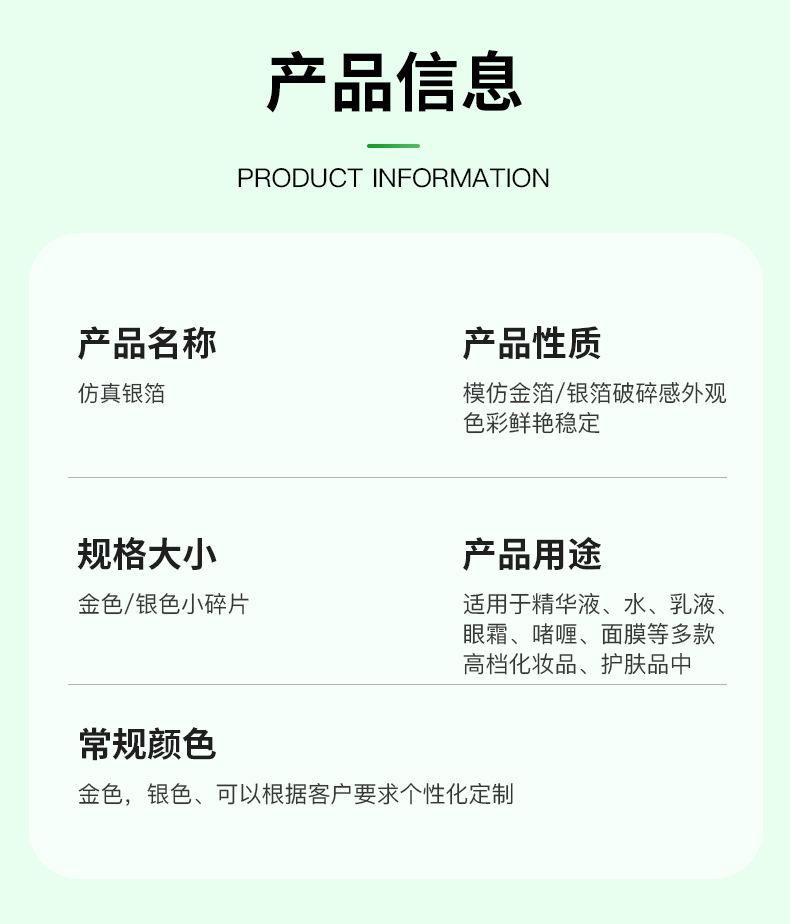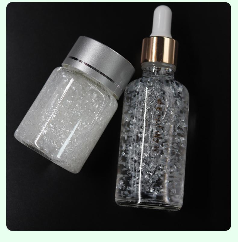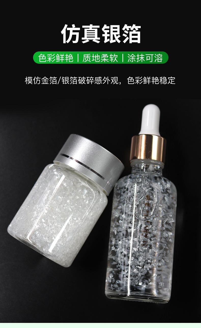Los fabricantes venden gel de esencia de lámina de plata de simulación soluble con pétalos nutricionales/pequeños fragmentos de plata.