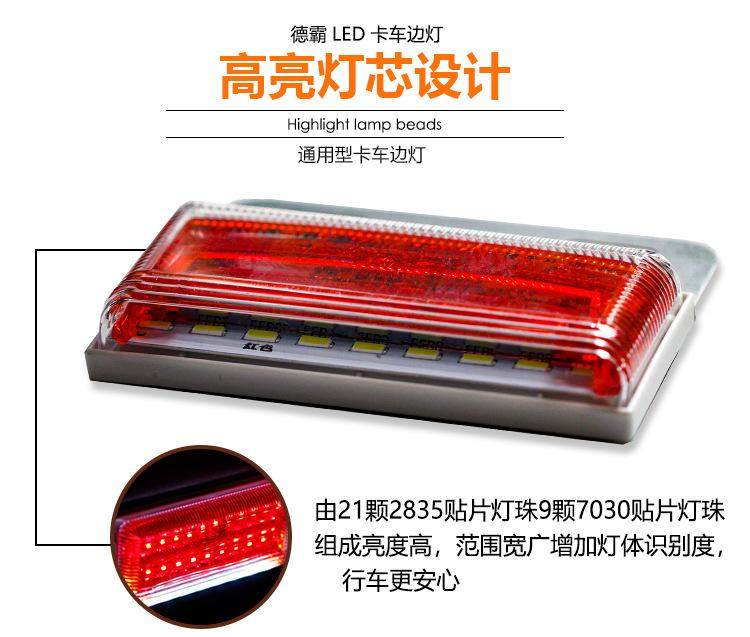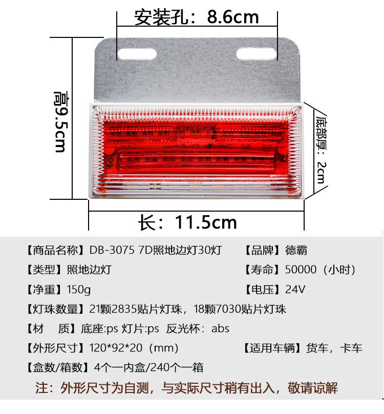 Luz lateral para remolque de camión, 12 V/24 V, luz de piso destacada, luz trasera de marcha atrás impermeable que muestra advertencia de estacionamiento amplio