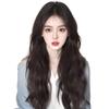 [Crema rosa y blanca] Peluca femenina con encaje en la frente, estilo diario, rosa platino, red de celebridad, cabeza completa, peluca de cabello largo y rizado