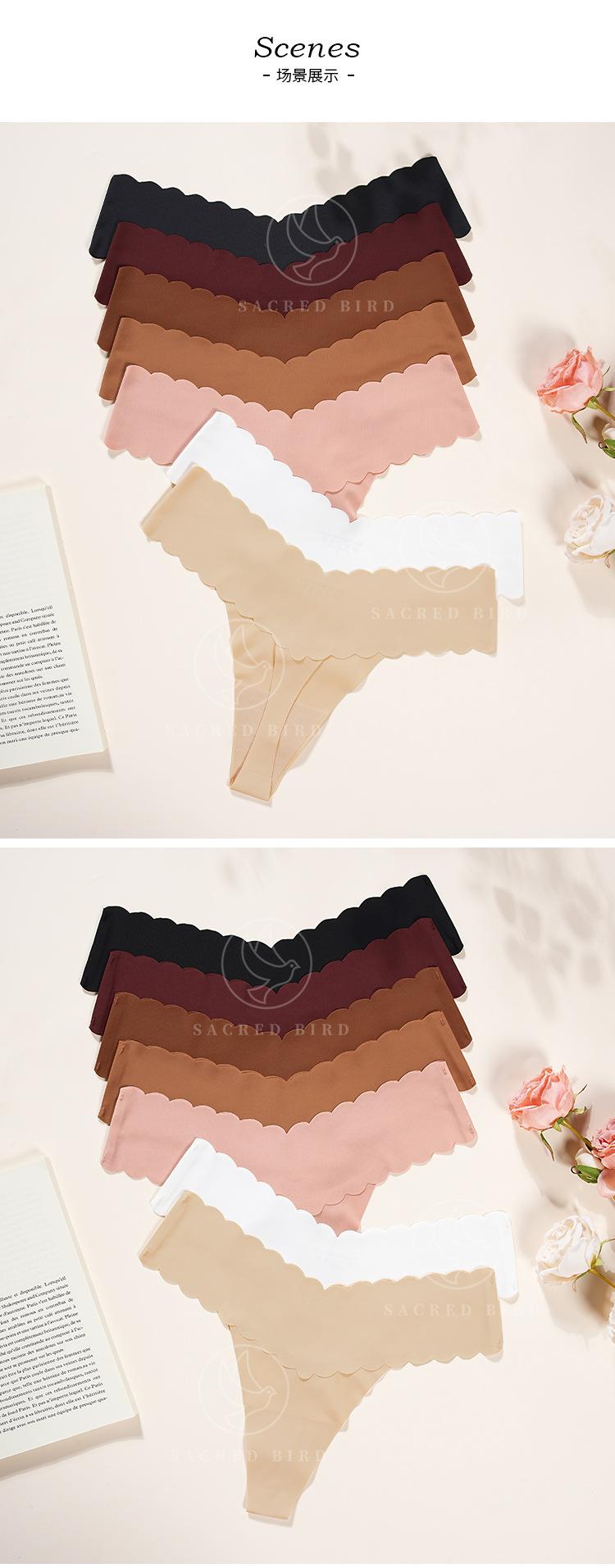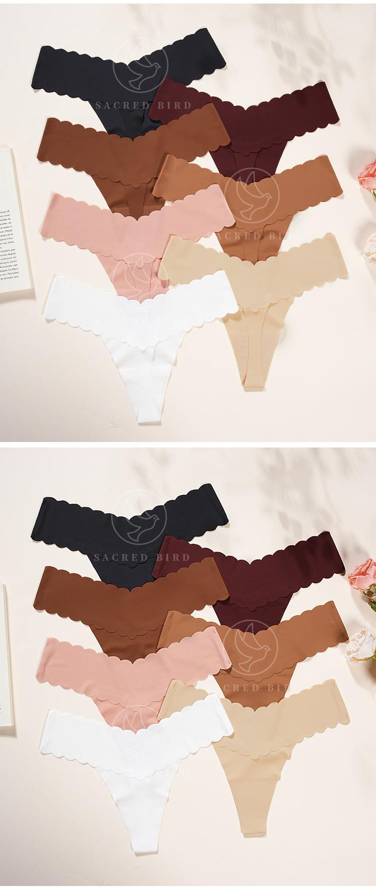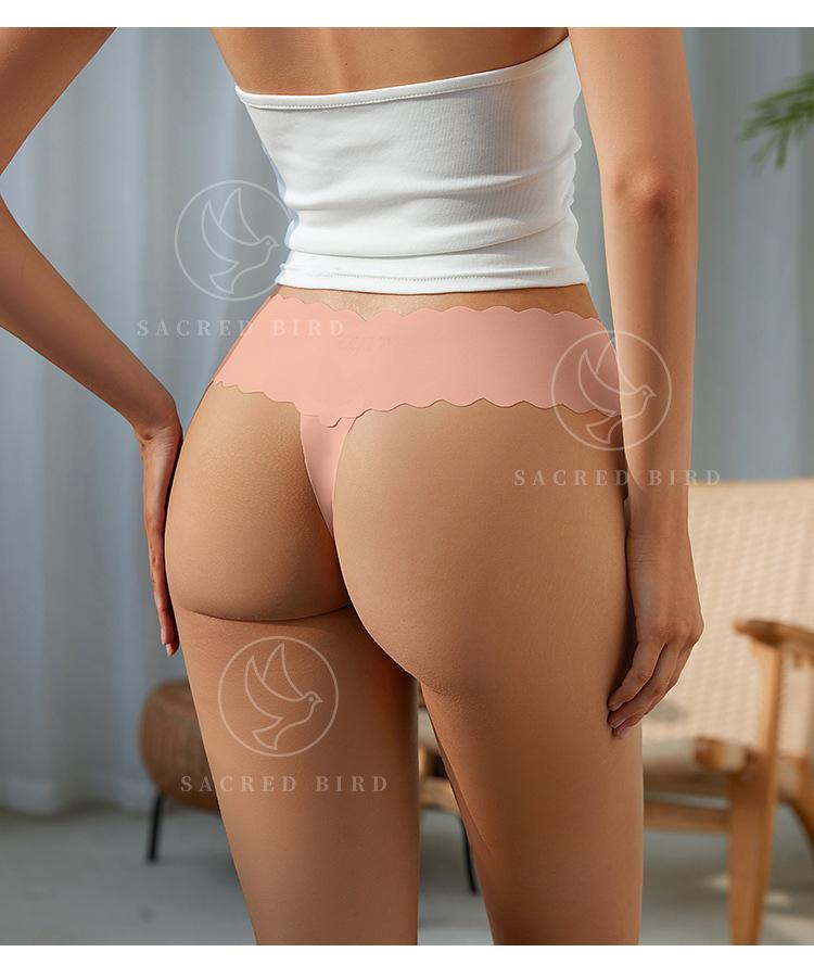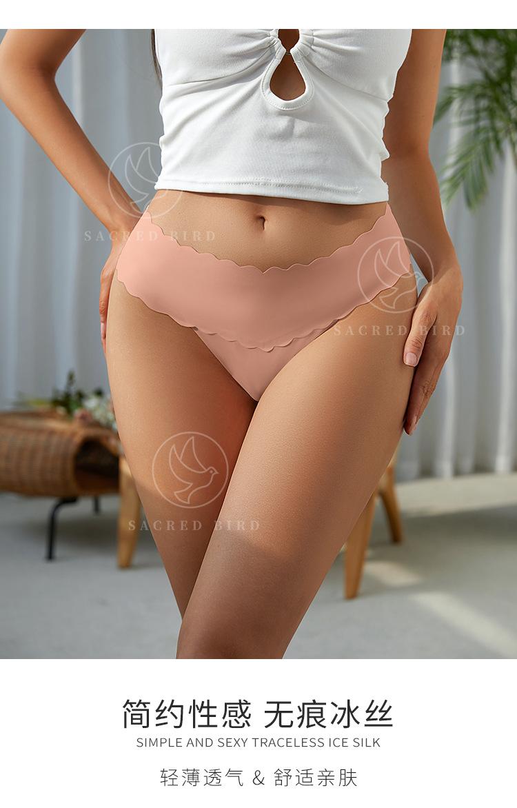 Tanga de una pieza con cintura ondulada en forma de V, de seda helada, sin costuras, de cintura baja, con espalda en T y entrepierna de algodón para niña
