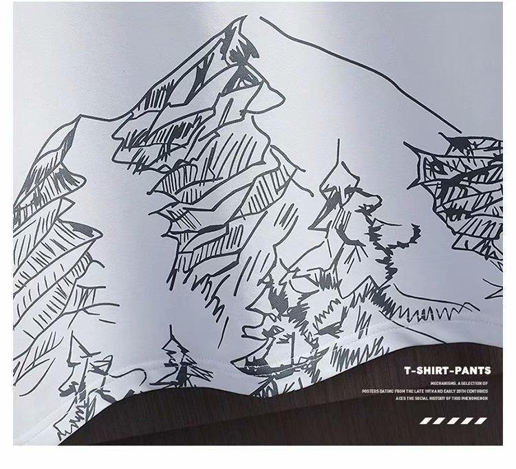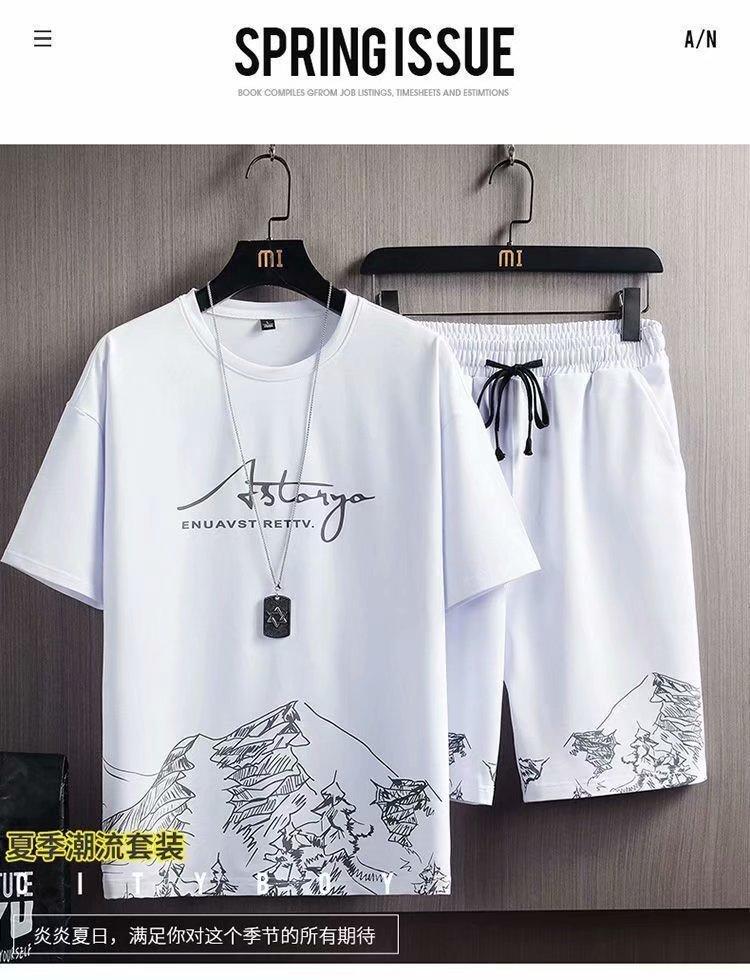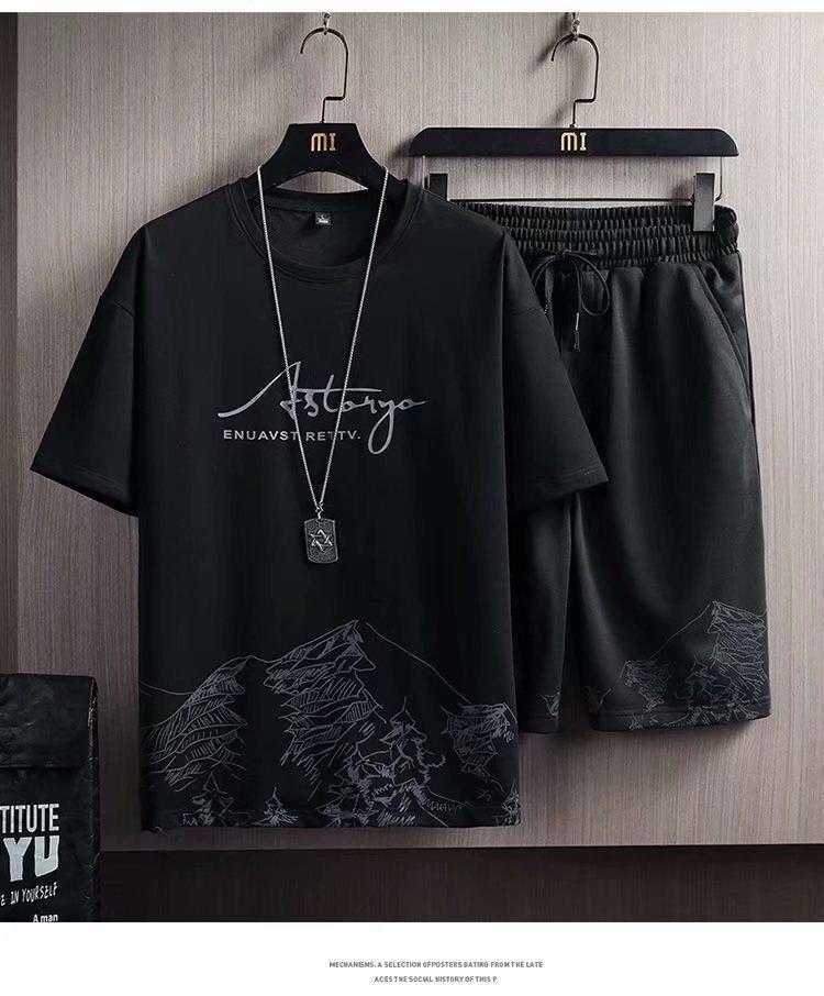 Traje deportivo y de ocio de talla grande para hombre, camiseta de manga corta con estampado holgado de marca de moda, pantalones cortos de cinco puntos, novedad de verano