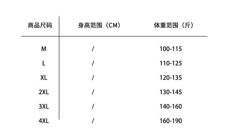 M recommended weight 95-110, L recommended weight 110-125, XL recommended weight 120-135, 2XL recommended weig...