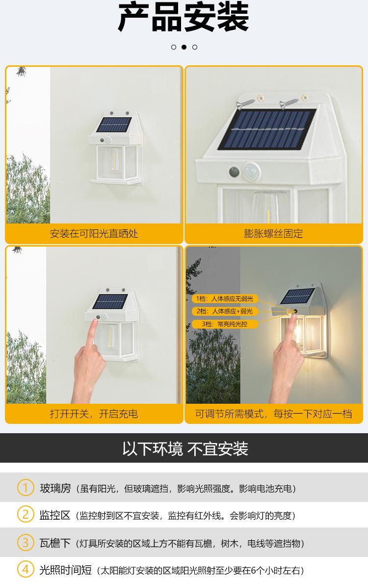 Compra Lámpara de inducción solar para exteriores, lámpara de pared retro para exteriores, lámpara solar, lámpara de tungsteno impermeable, lámpara de jardín de inducción al por mayor en Joom.pro