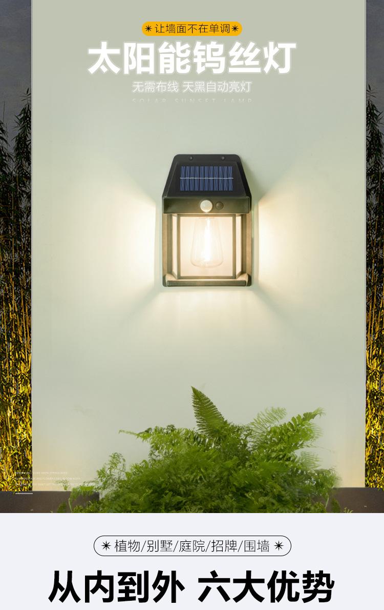 Lámpara de inducción solar para exteriores, lámpara de pared retro para exteriores, lámpara solar, lámpara de tungsteno impermeable, lámpara de jardín de inducción