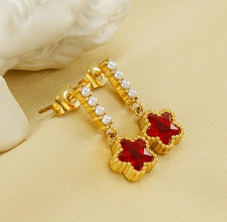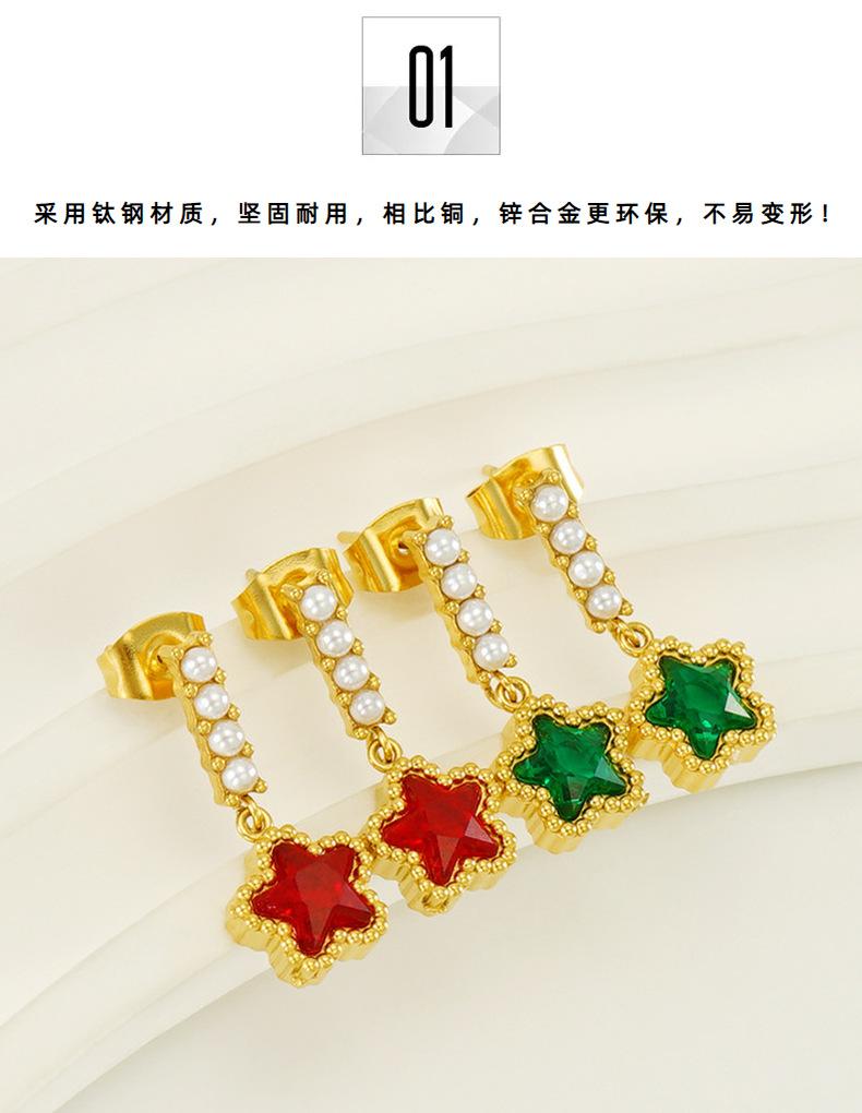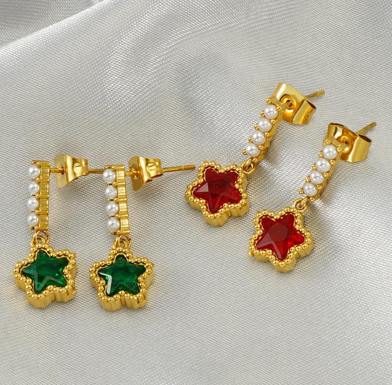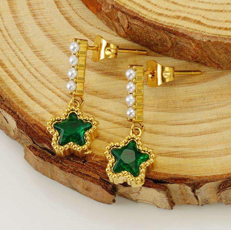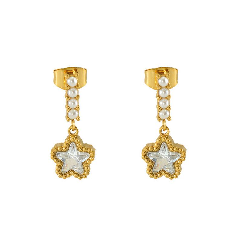 Pendientes de perlas de acero inoxidable 2023 nuevos de estilo europeo y americano transfronterizos, pendientes de estrella de circonita a juego para mujer, pendientes al por mayor
