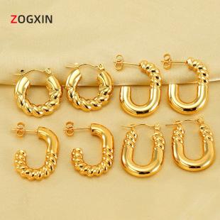 Pendientes de celebridades de Internet de venta caliente transfronteriza, pendientes geométricos en espiral europeos y americanos de acero de titanio chapado en oro, pendientes personalizados para mujeres al por mayor