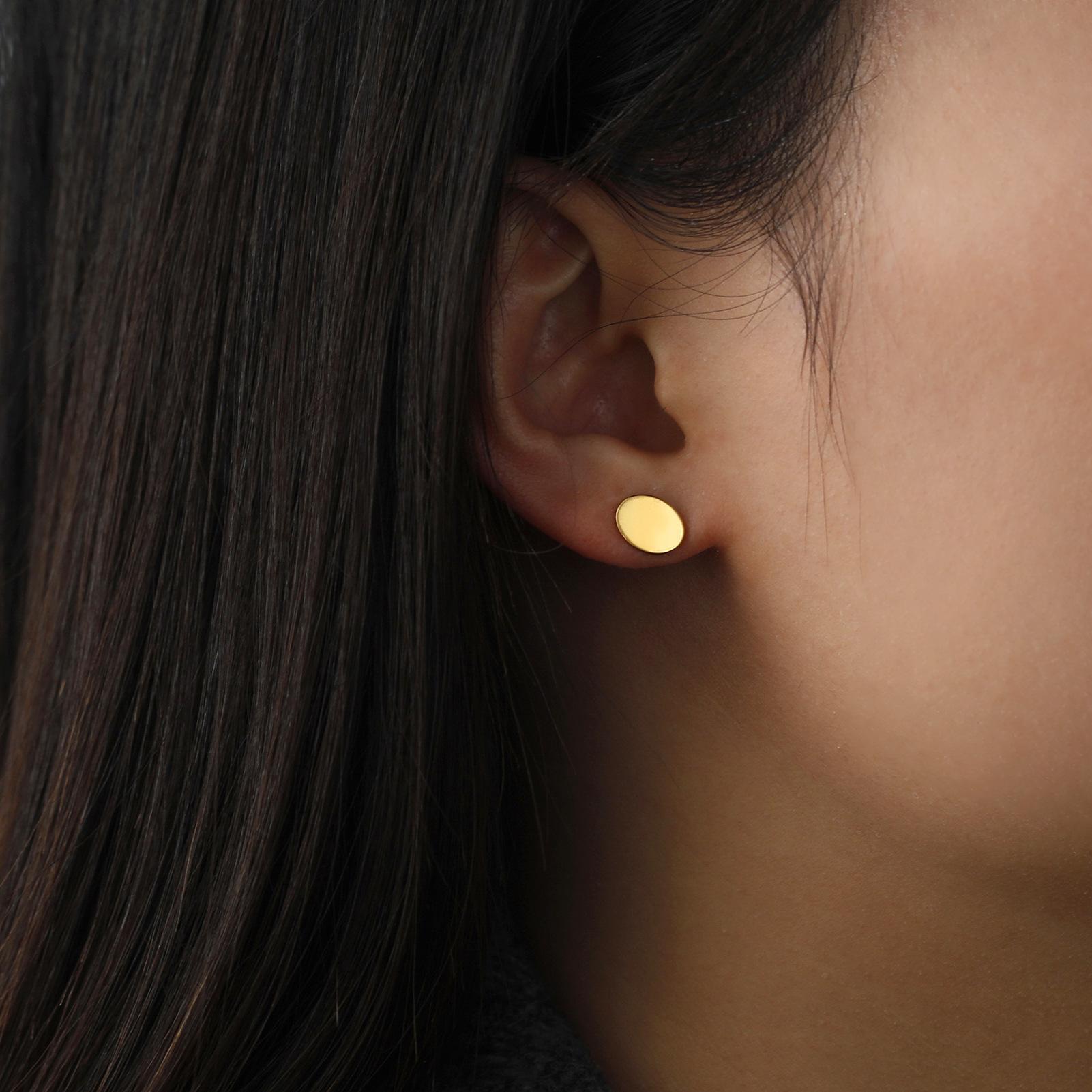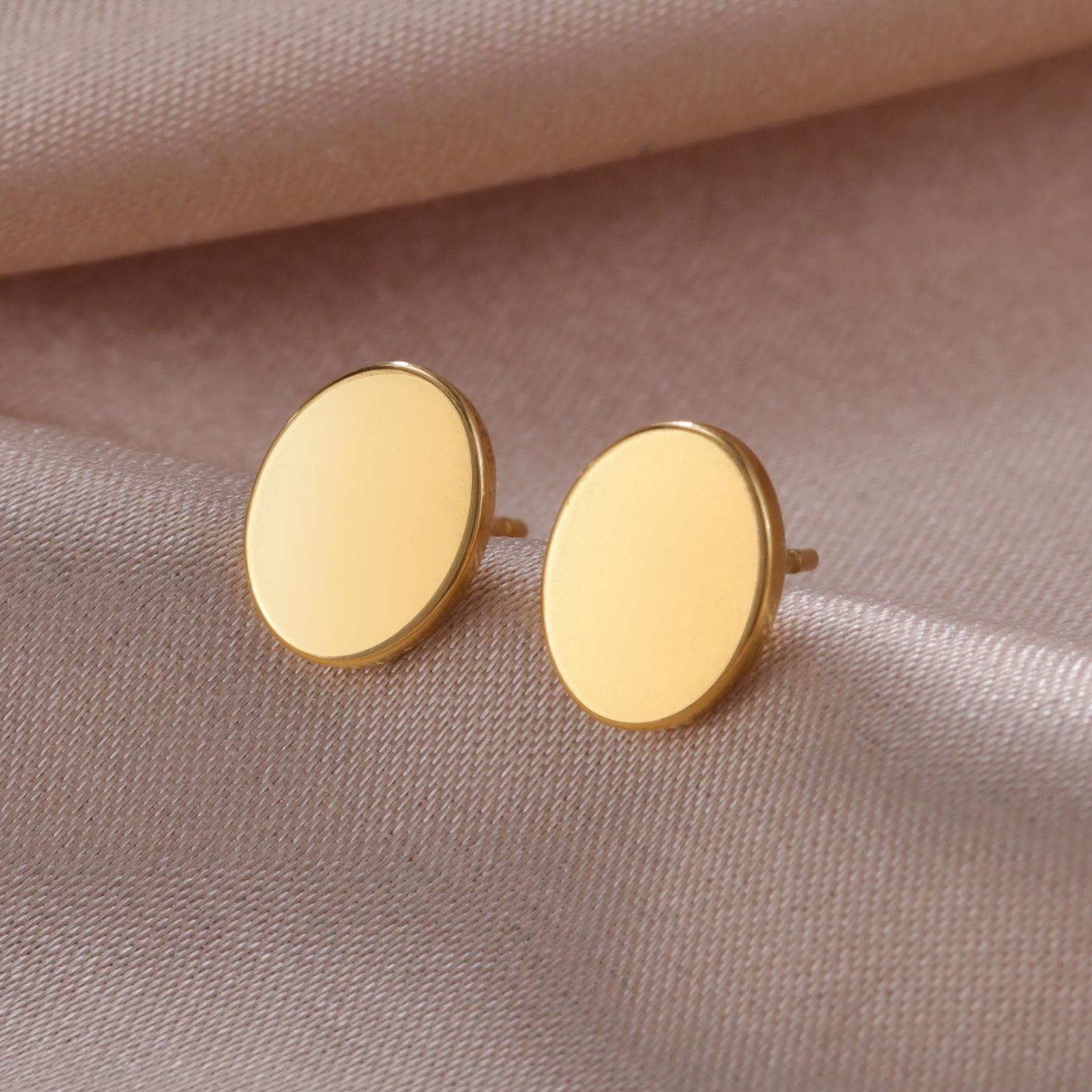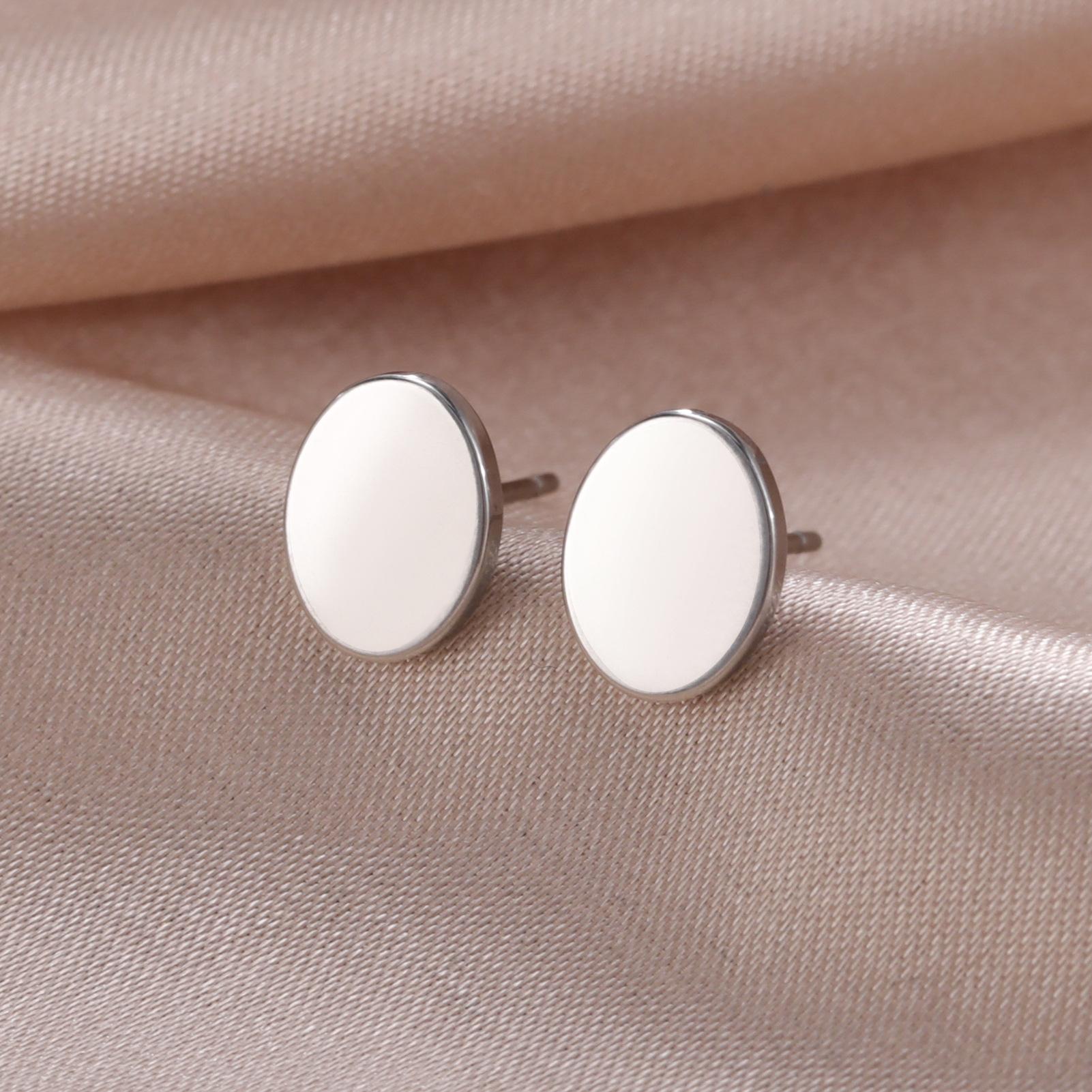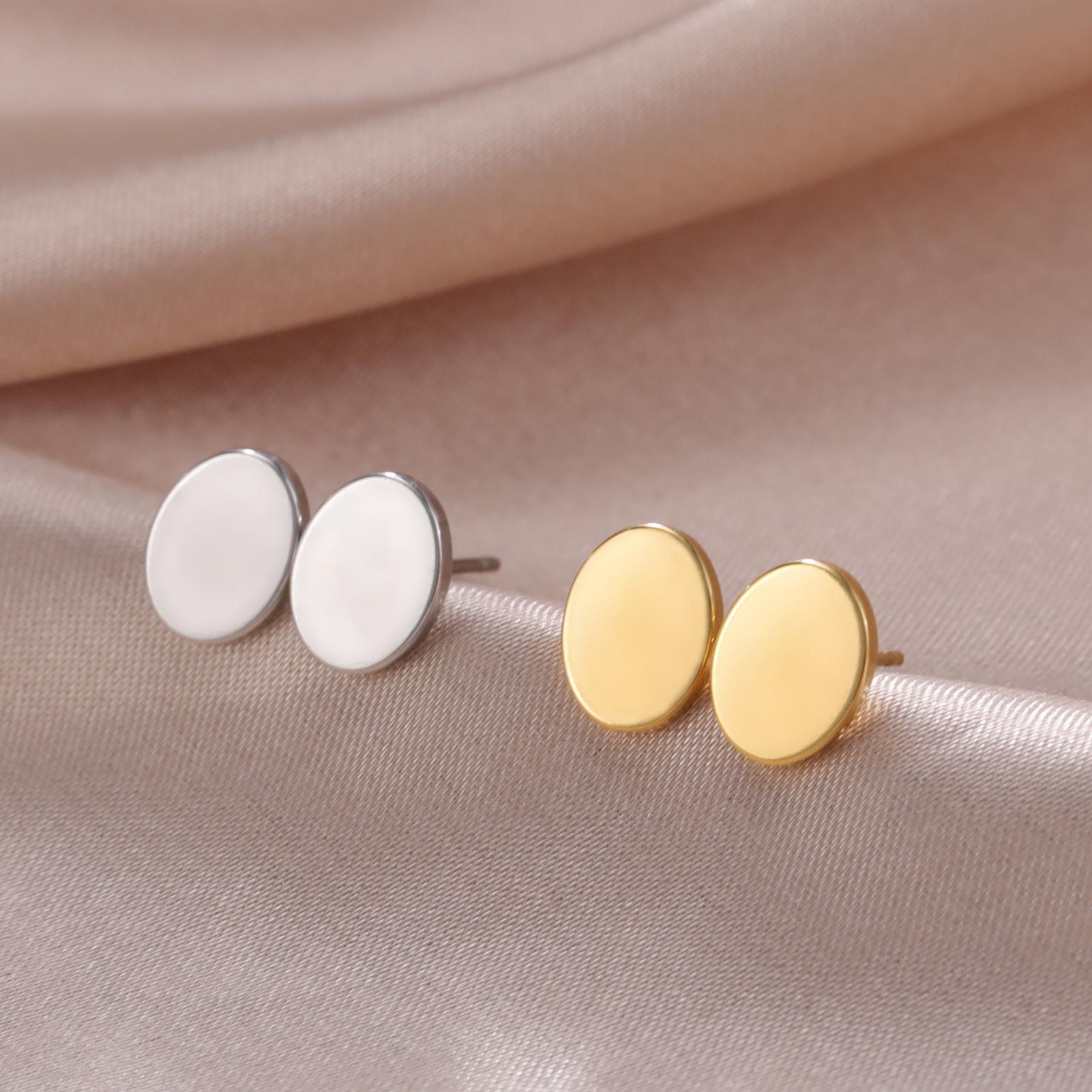 Aretes ovalados de acero inoxidable de corte simple de nueva moda europea y americana para hombres y mujeres, aretes de botón de aguja fina en stock al por mayor