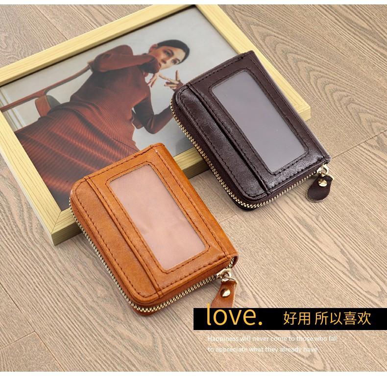 Nuevo tarjetero retro de cera de aceite, monedero multifunción, tarjetero multitarjeta, tarjetero antirrobo.