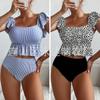 2021 nuevo traje de baño de bikini europeo y americano con rayas tridimensionales de tela de serpiente para mujer, sexy transfronterizo