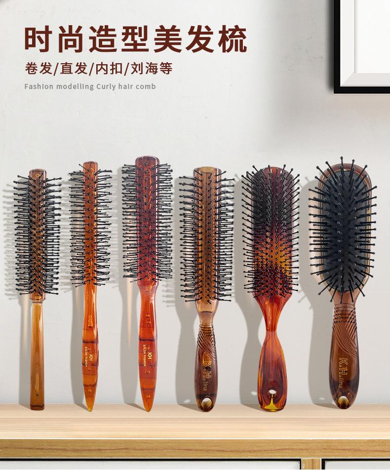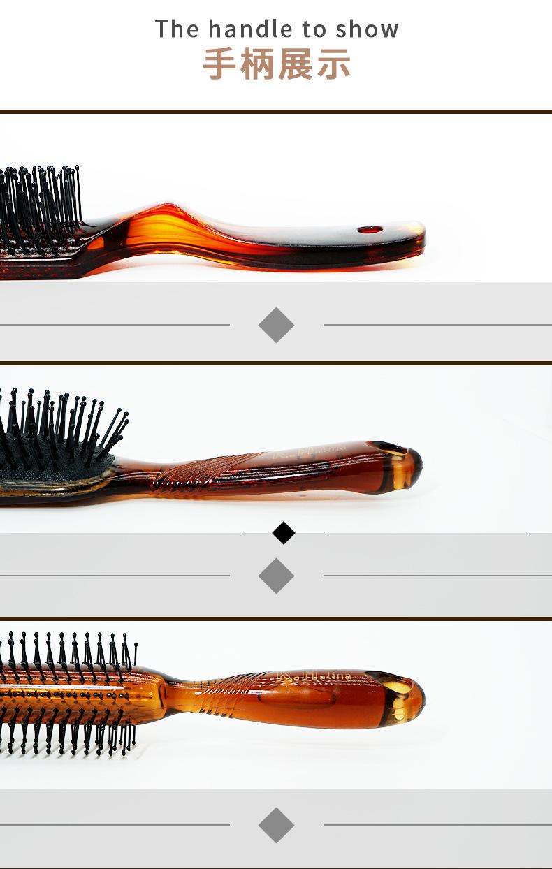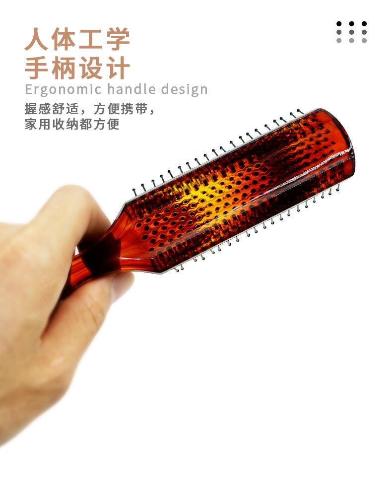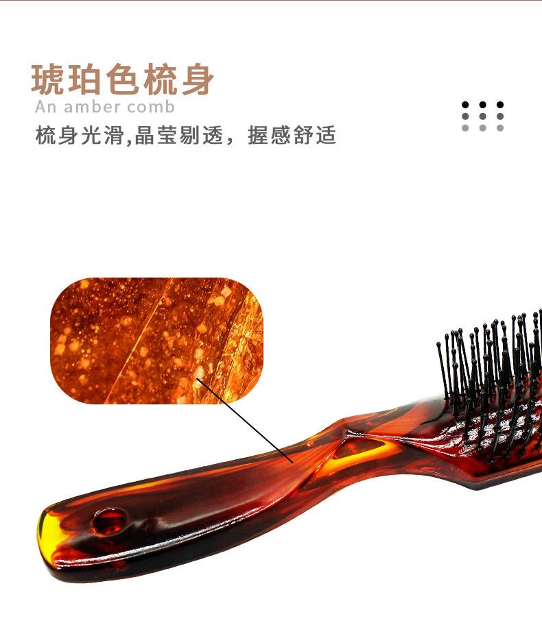 Peine de peluquería para peinar ámbar de alto valor de color, peine de rodillo con hebilla interior, peine de nueve filas para ondas grandes y peinado hacia atrás, peine largo con colchón de aire