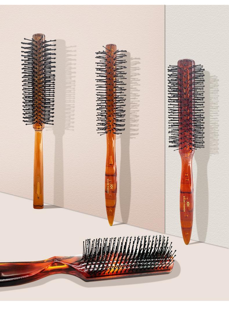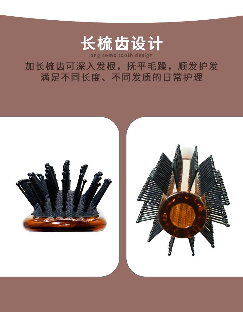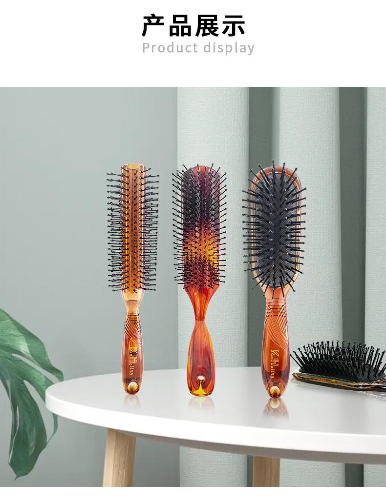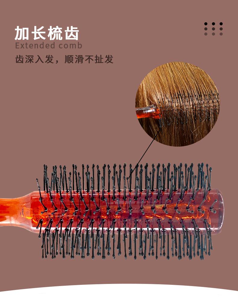 Peine de peluquería para peinar ámbar de alto valor de color, peine de rodillo con hebilla interior, peine de nueve filas para ondas grandes y peinado hacia atrás, peine largo con colchón de aire