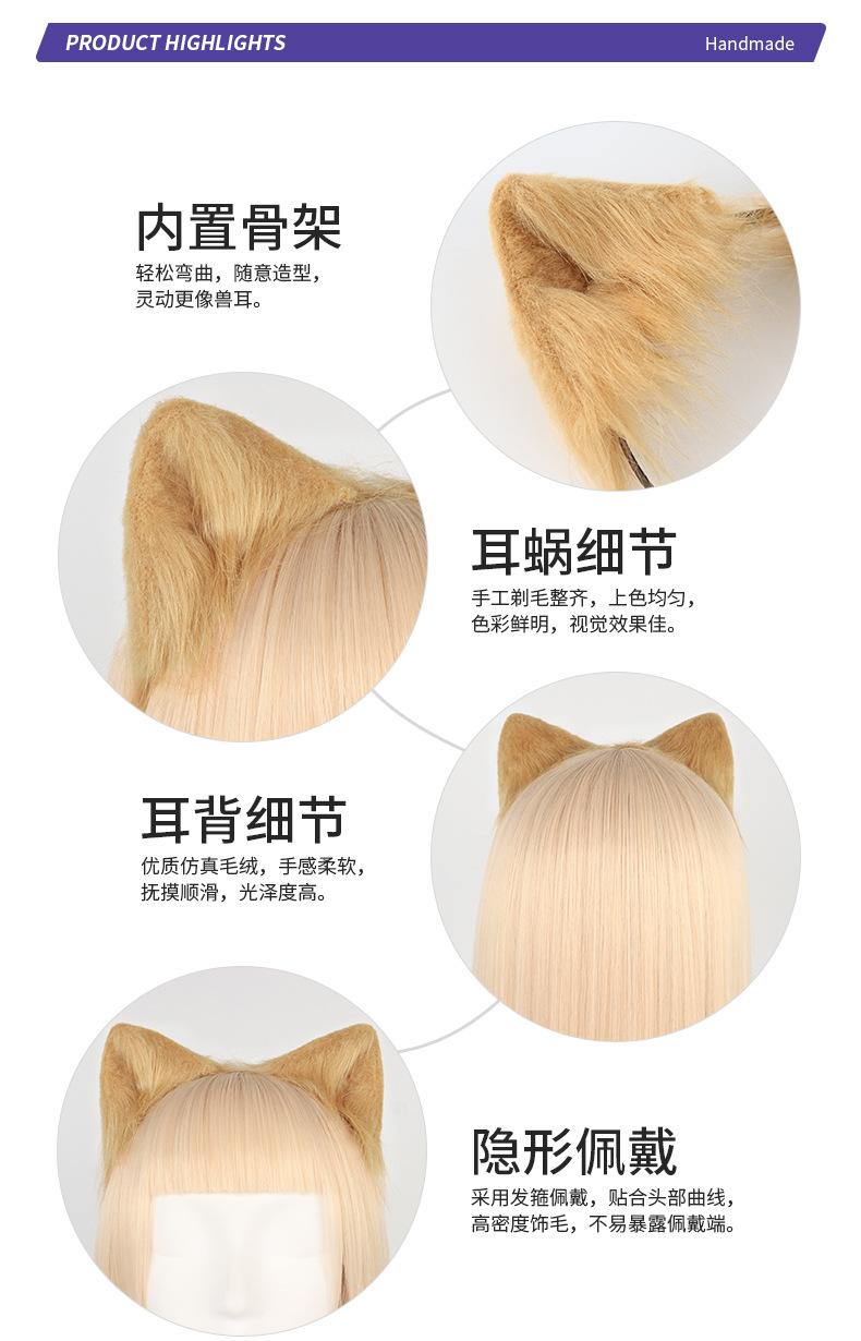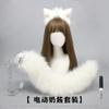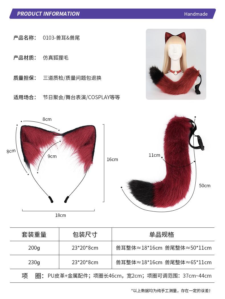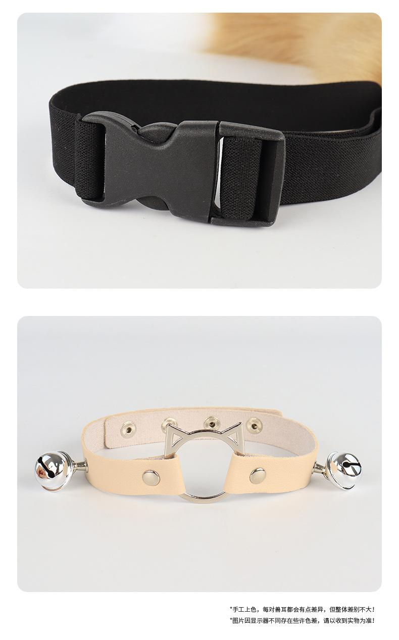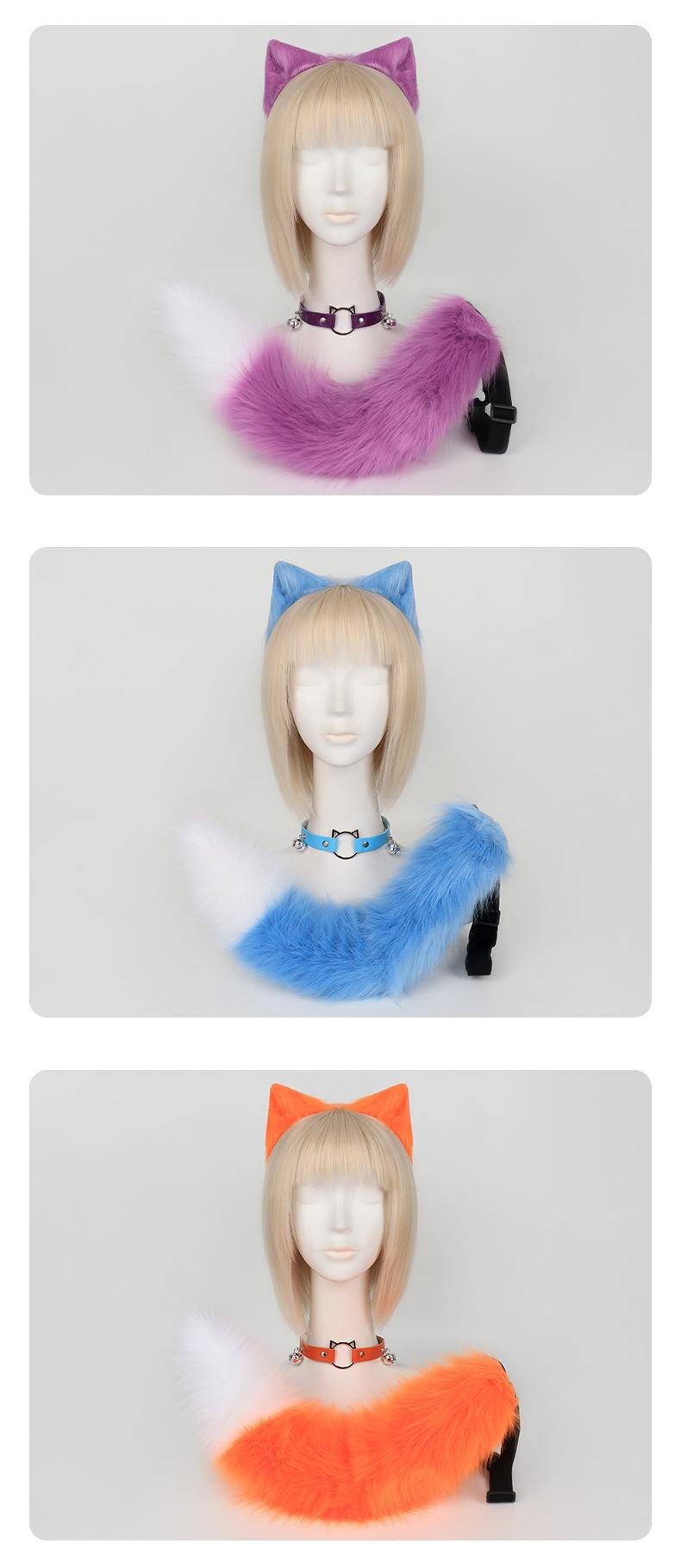 Traje de cola de bestia con orejas de bestia de peluche cos bidimensional, diadema con orejas de zorro y orejas de lobo, accesorios de cola, collar con campana y micrófono de gato