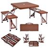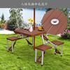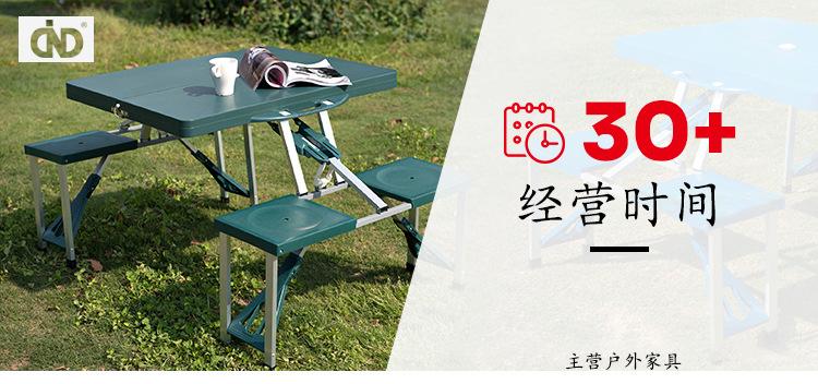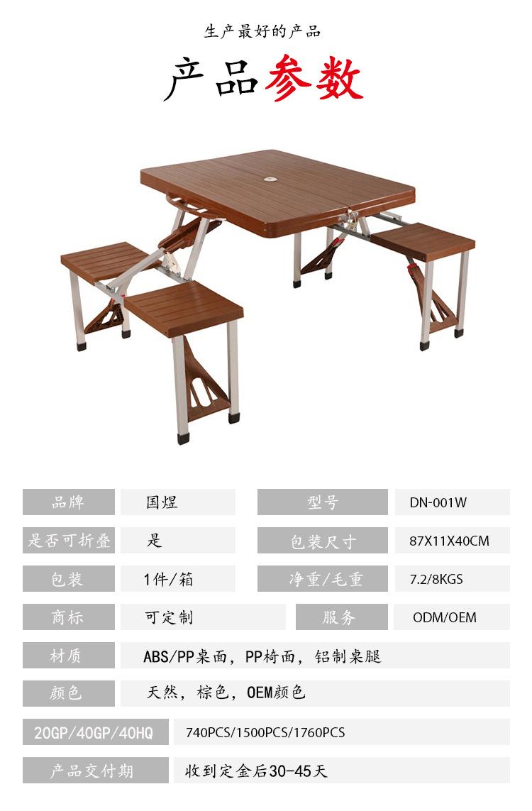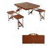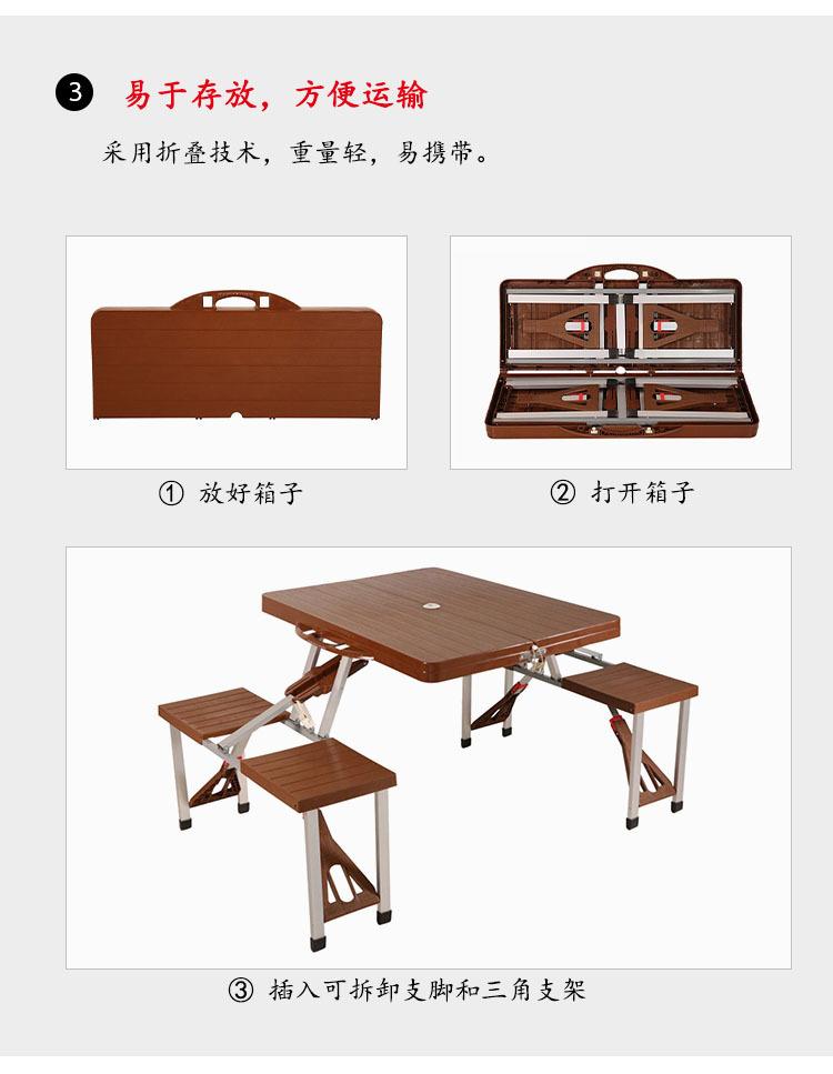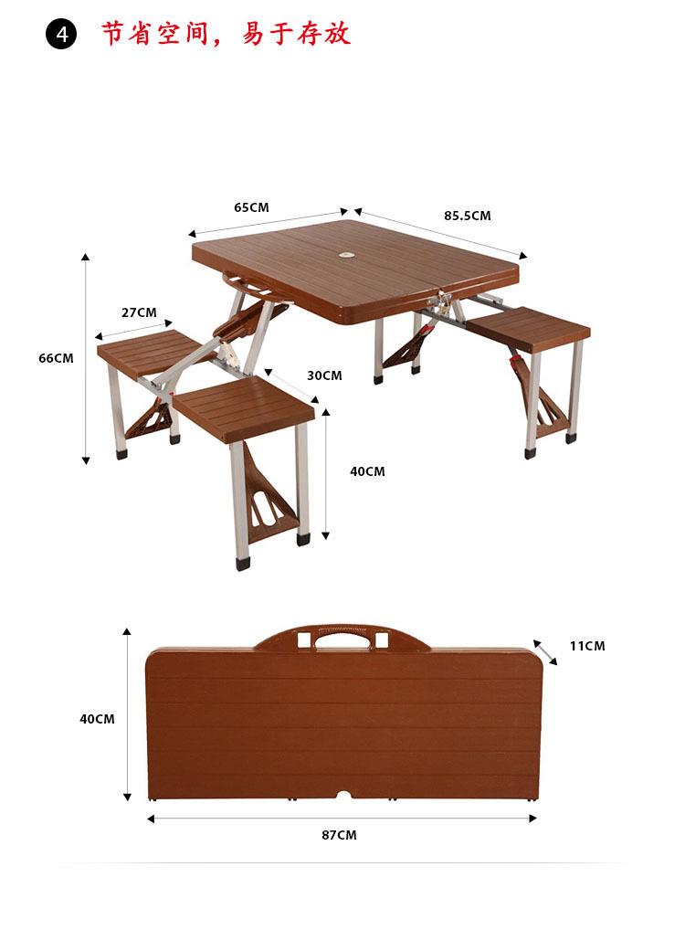 Mesa y silla plegable portátil de una pieza de plástico con grano de madera para exteriores, camping, viajes, mesa de comedor, mesa de exhibición publicitaria de empuje en el suelo
