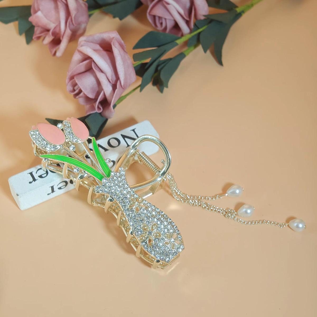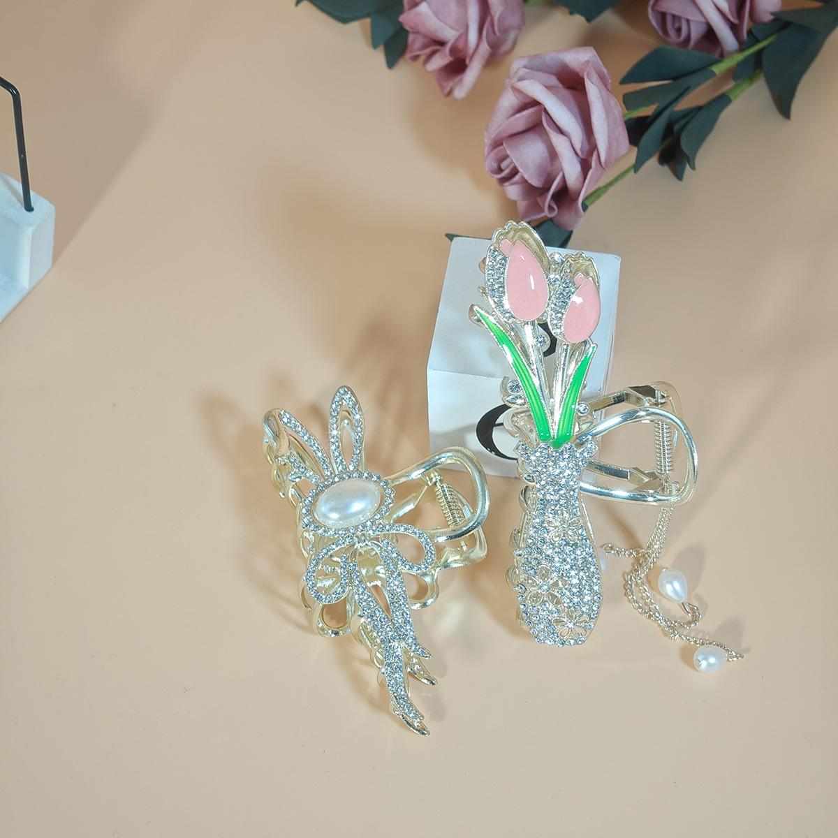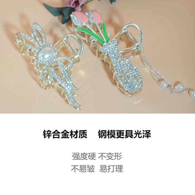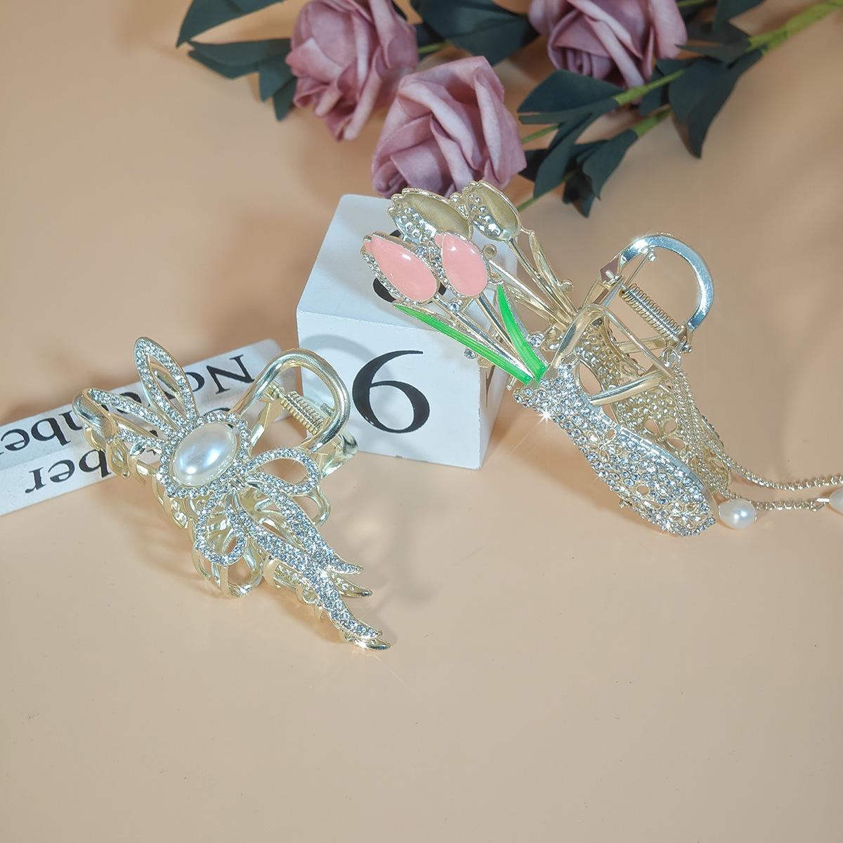 Pinza de Aleación Tulipán Versátil Borla Parte Trasera Accesorios para el Cabello Cabeza Diamante Conejo Pinza Tiburón Tocado Horquilla de Sentido Avanzado