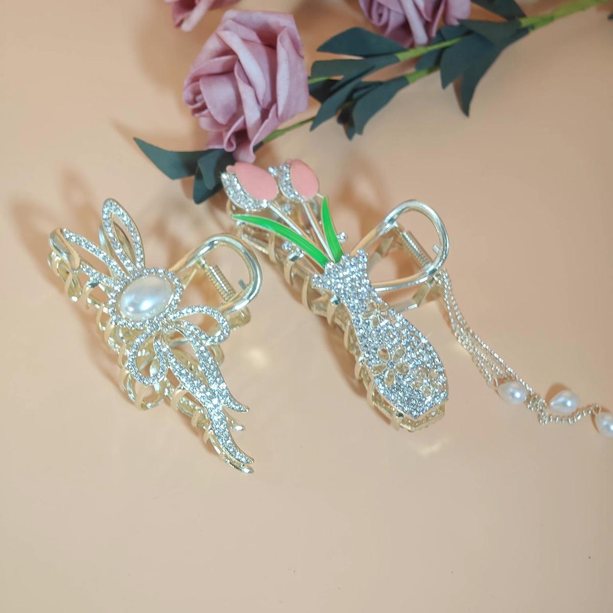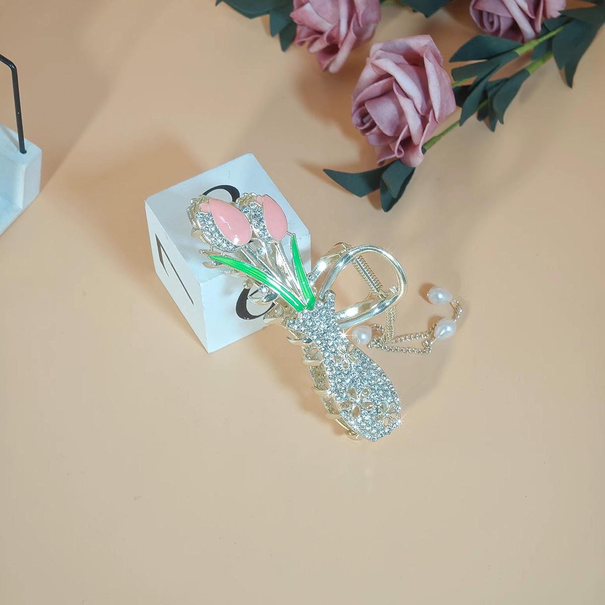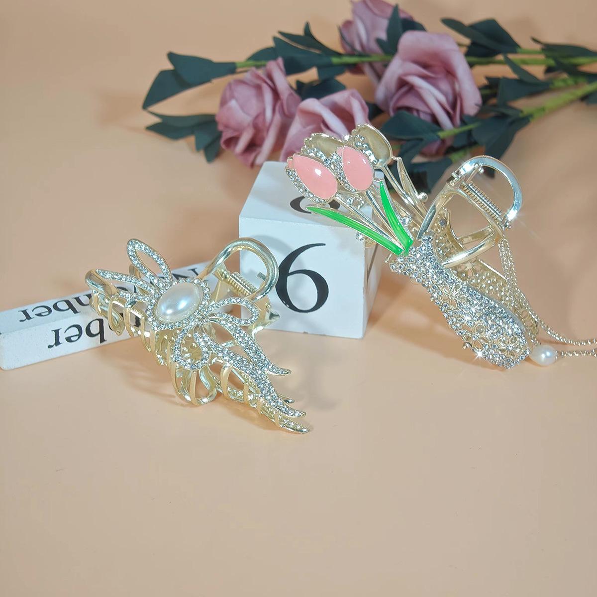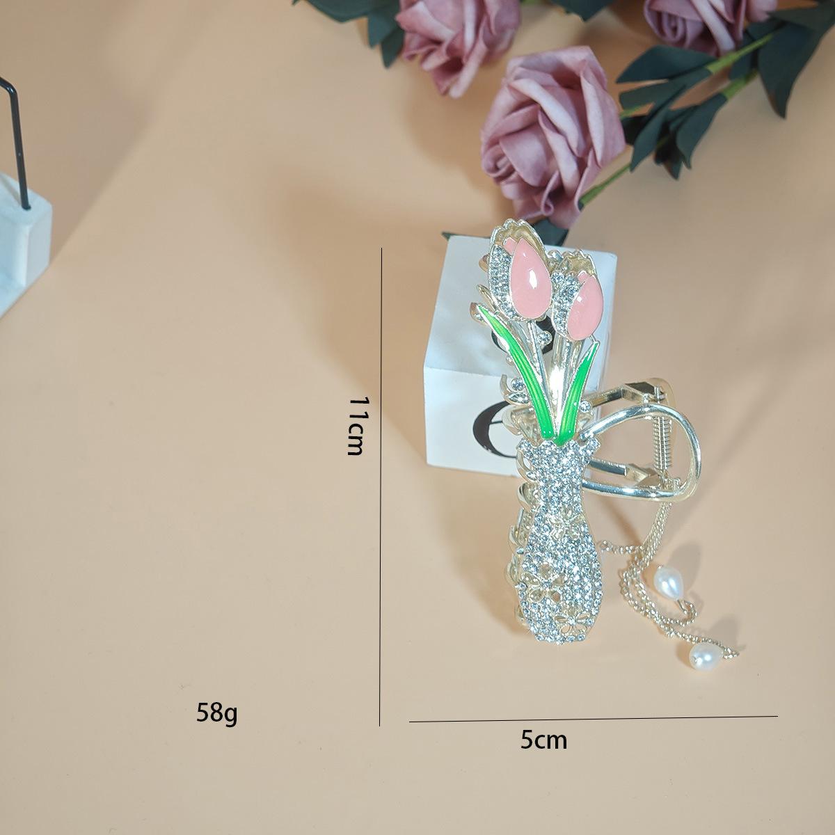 Pinza de Aleación Tulipán Versátil Borla Parte Trasera Accesorios para el Cabello Cabeza Diamante Conejo Pinza Tiburón Tocado Horquilla de Sentido Avanzado