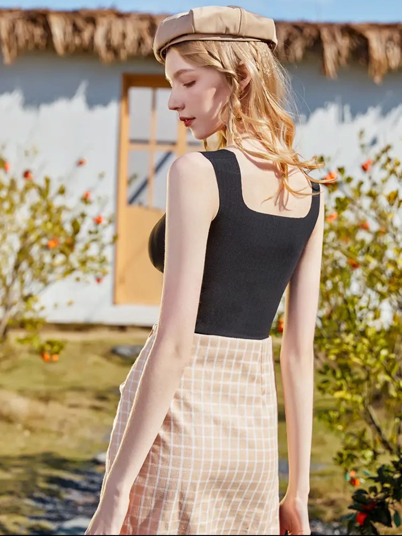 Sujetador Casual Sin Costuras Chaleco Cuello Cuadrado Ropa Interior para Mujer Sujetador de Espalda Hermosa Top de Tubo Acolchado Todo en Uno