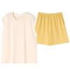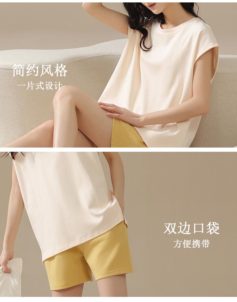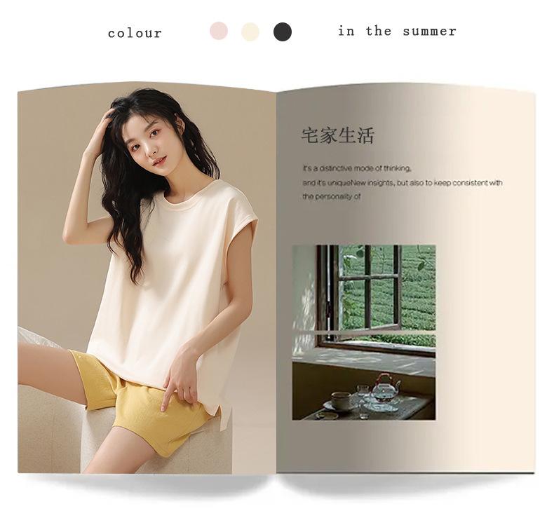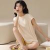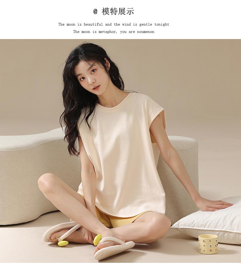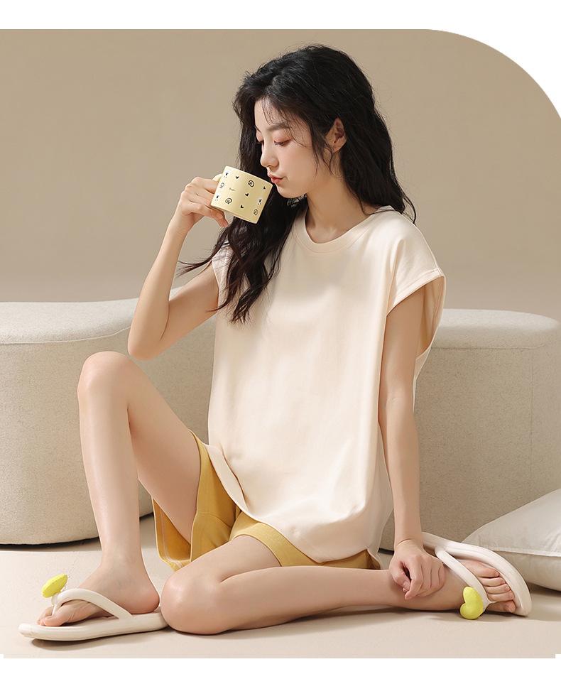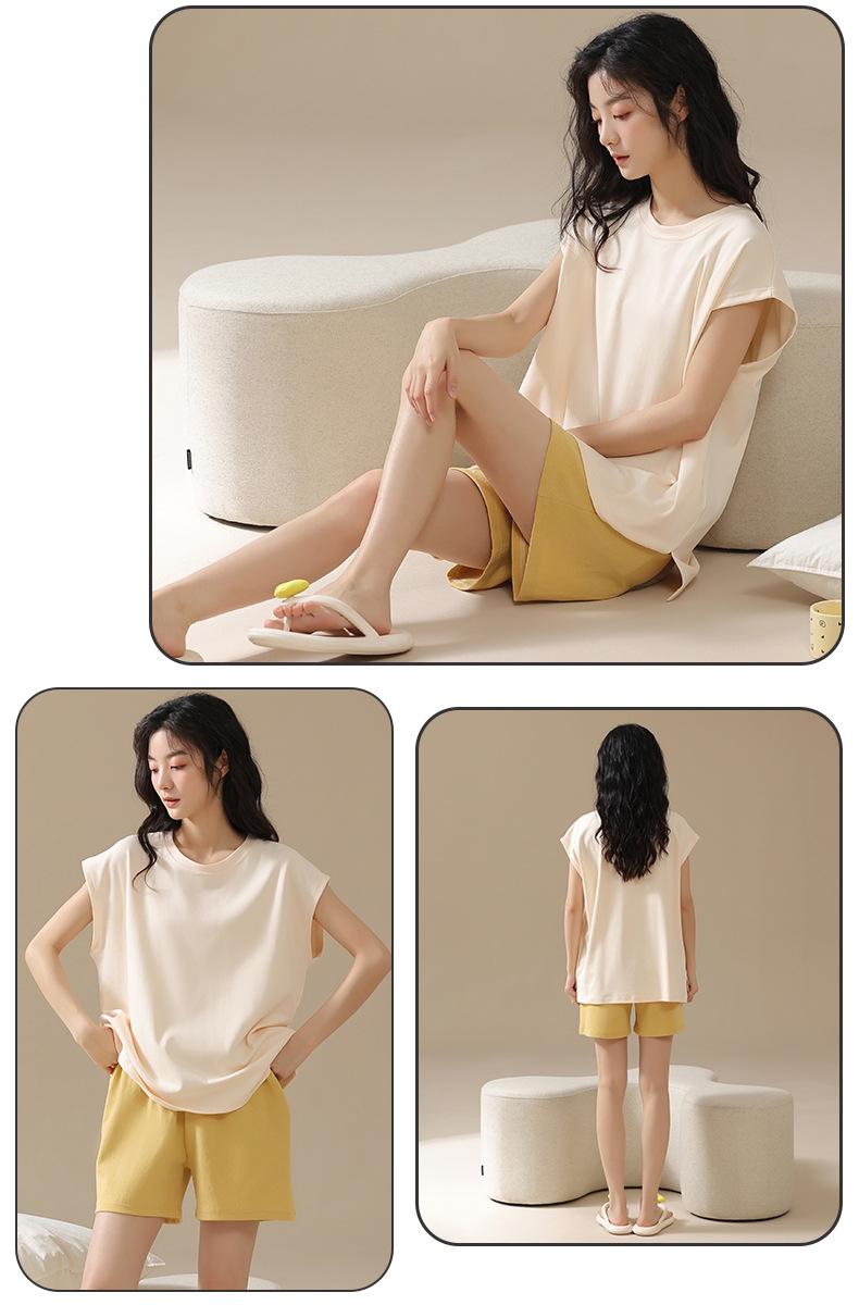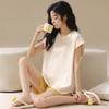 [Algodón Puro] Pijama de Verano para Mujer, Shorts Casuales Delgados de Manga Corta, Conjunto de Dos Piezas de Ropa para el Hogar de Color Sólido con Cuello Redondo, Transpirable