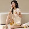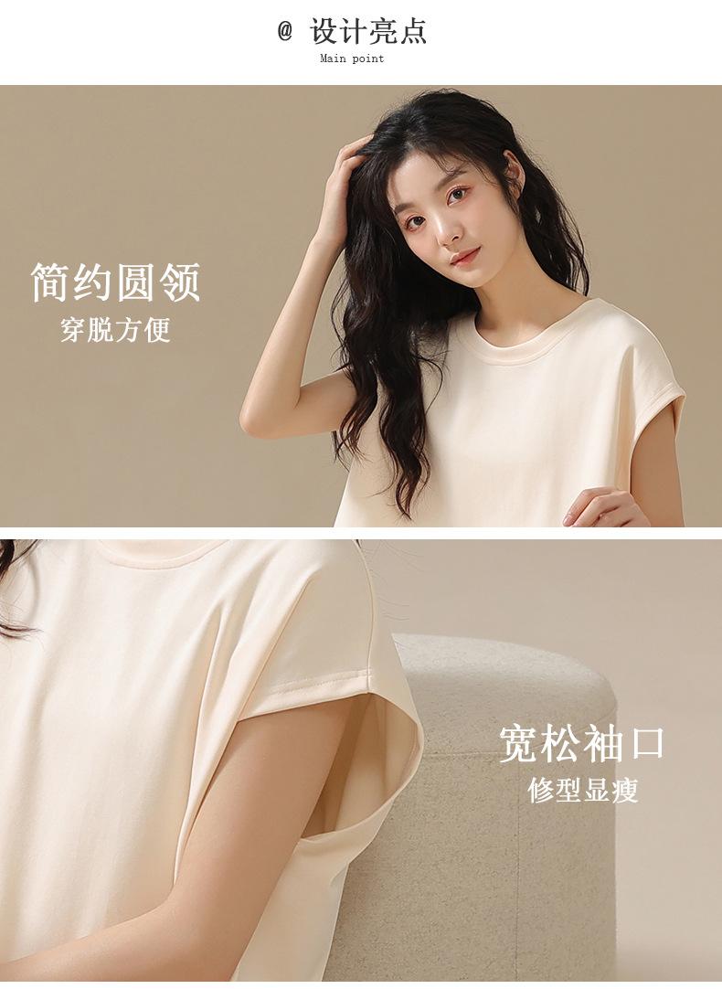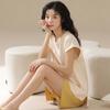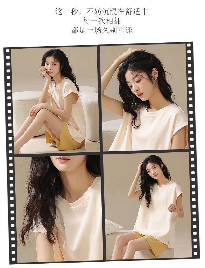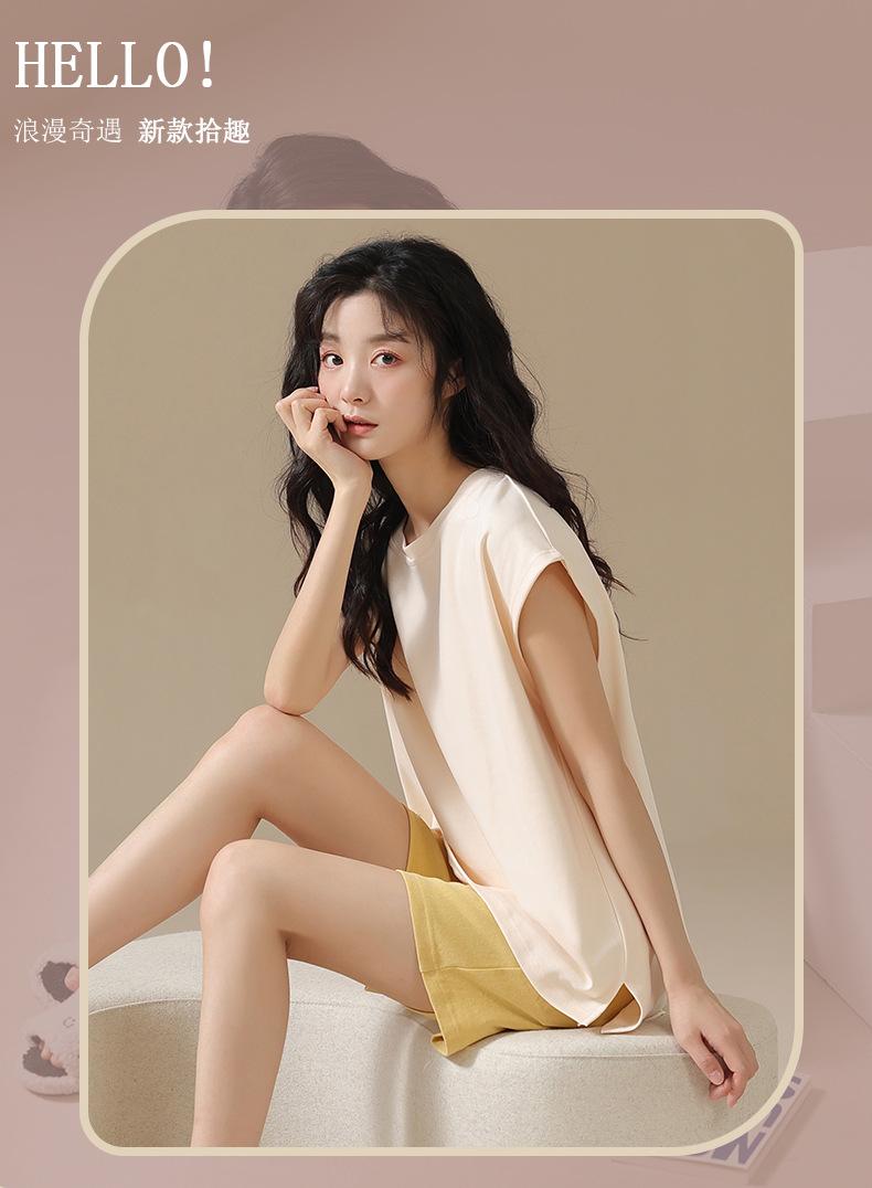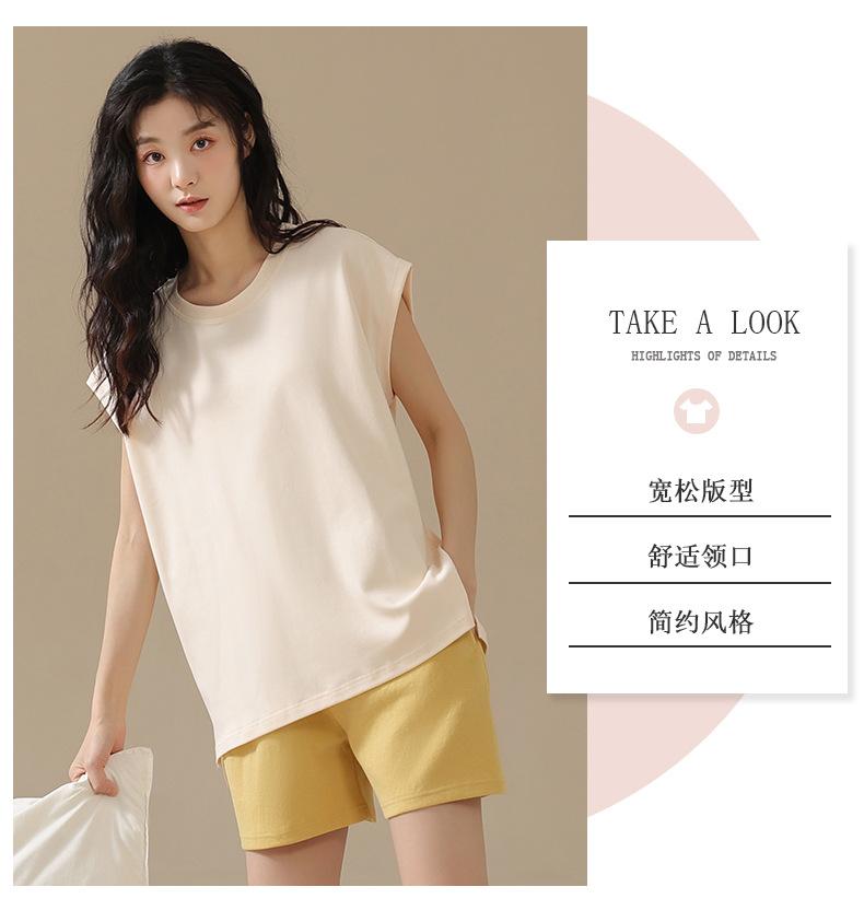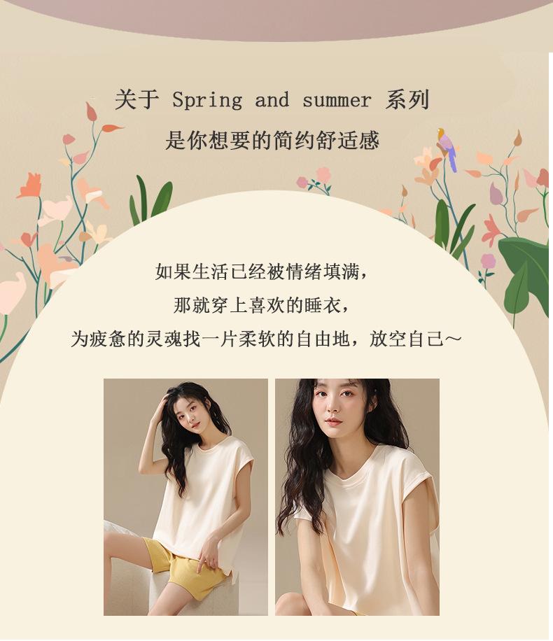 [Algodón Puro] Pijama de Verano para Mujer, Shorts Casuales Delgados de Manga Corta, Conjunto de Dos Piezas de Ropa para el Hogar de Color Sólido con Cuello Redondo, Transpirable