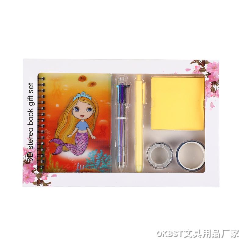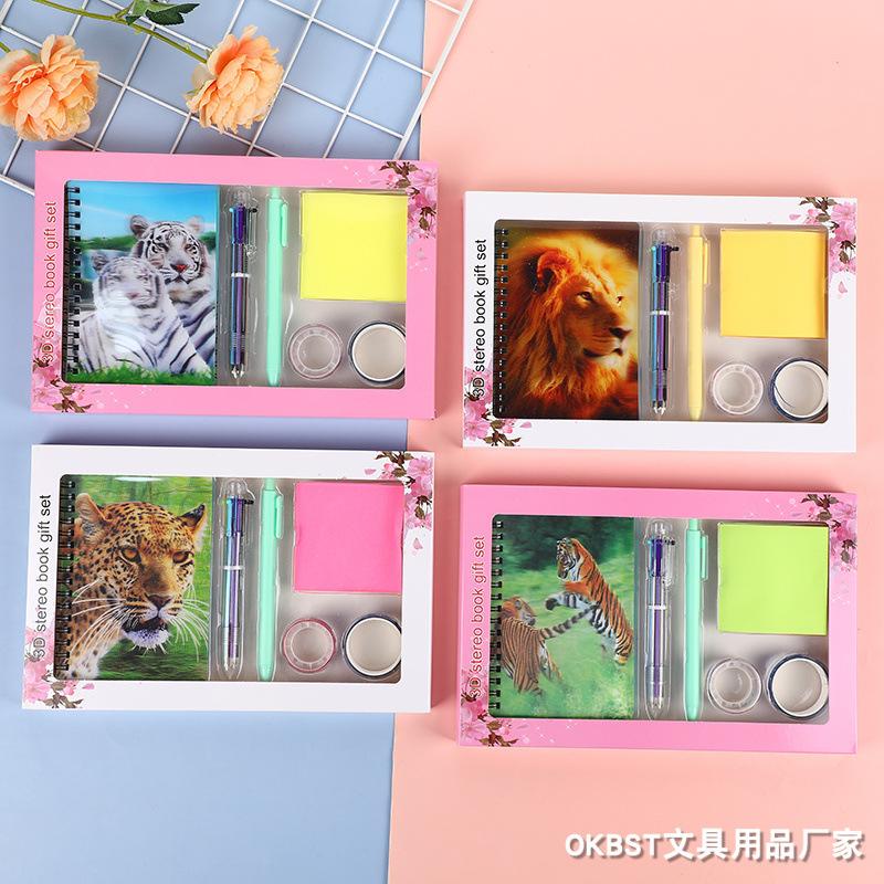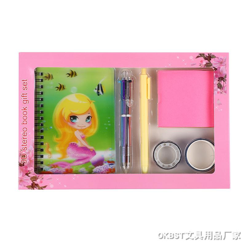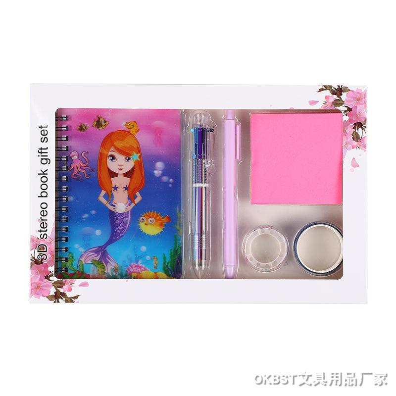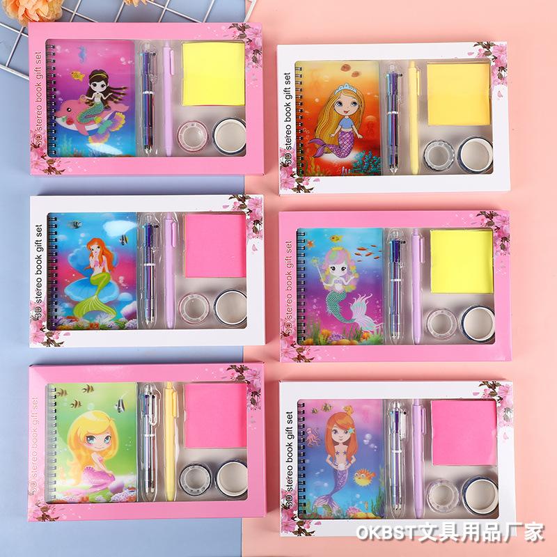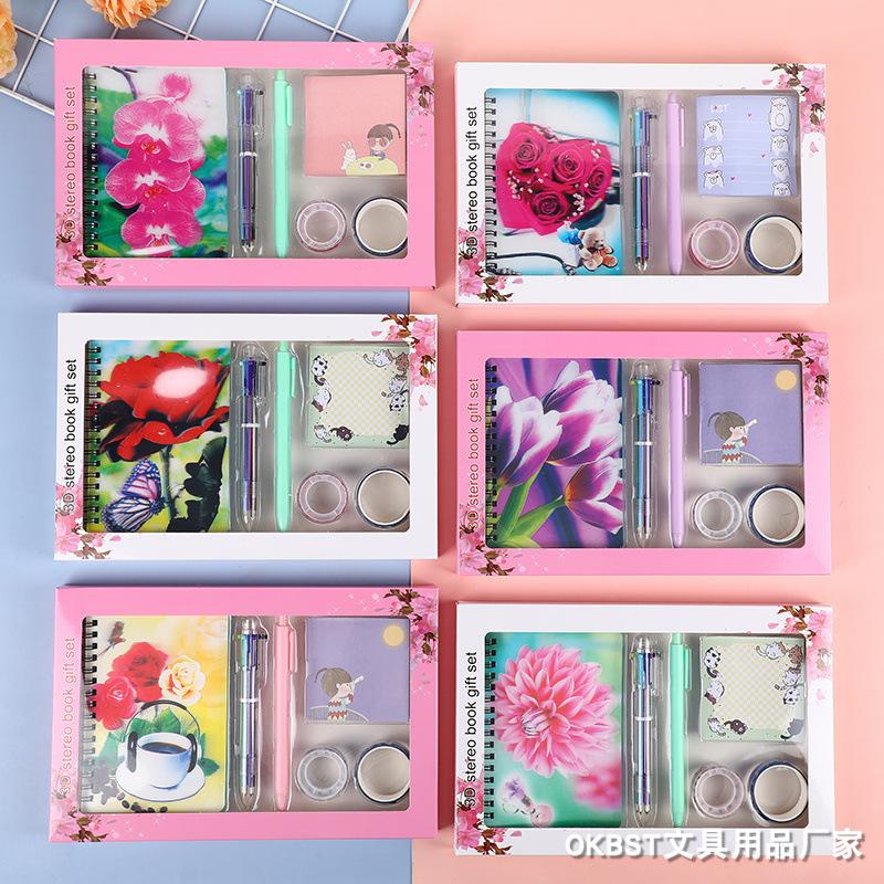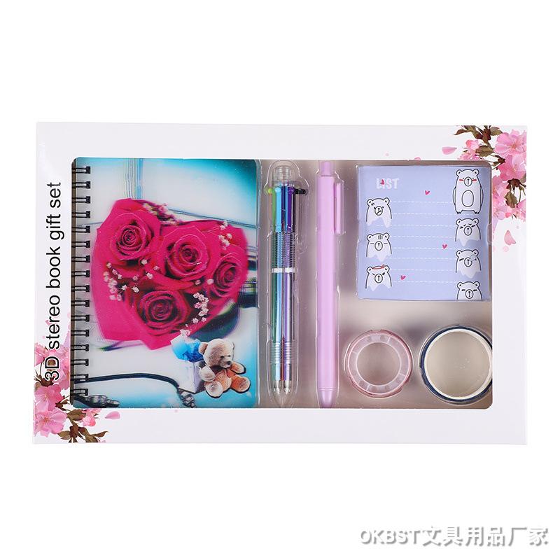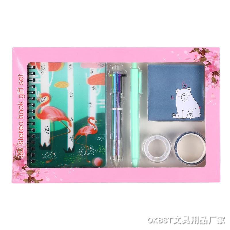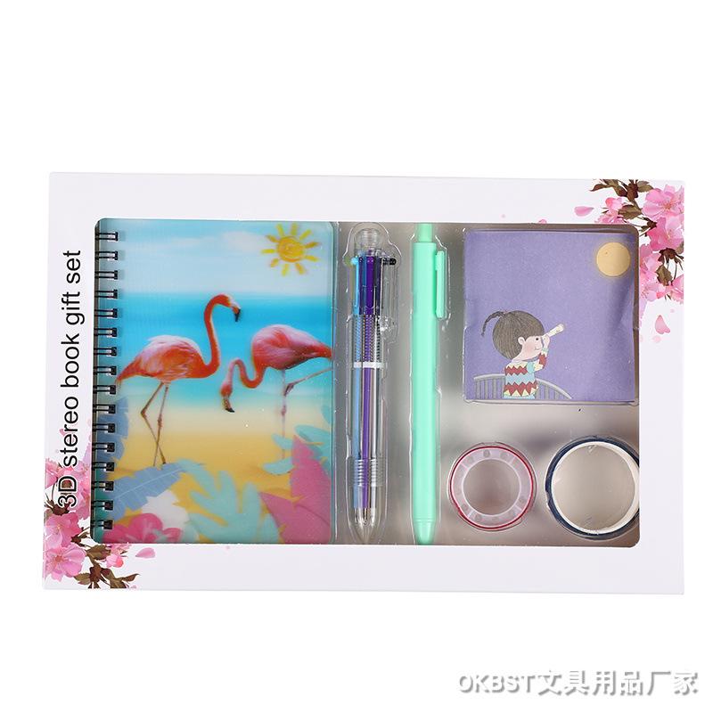 Set de Regalo de Papelería Cuaderno Libreta de Dibujo de Dibujos Animados Transfronterizo 3D Unicornio Niña Corazón Flamenco Pareja