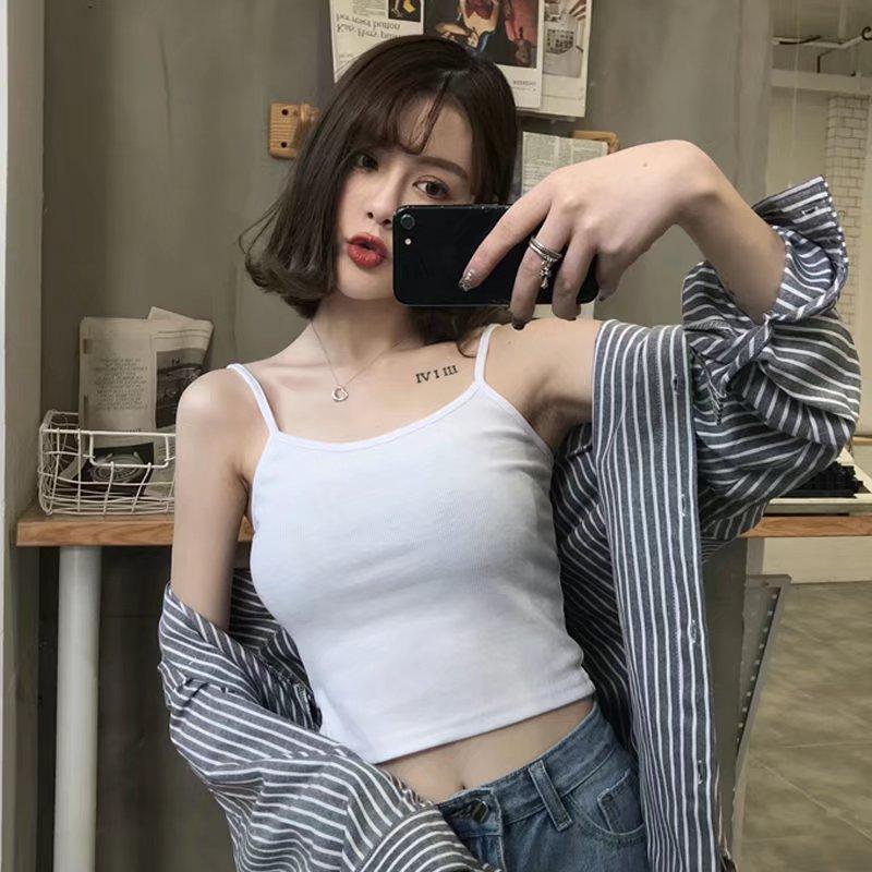 Camisola interior estilo americano Spice Girl para mujer, color liso, combina con todo, ajustada, adelgazante, estilo puro, estilo corto sexy.