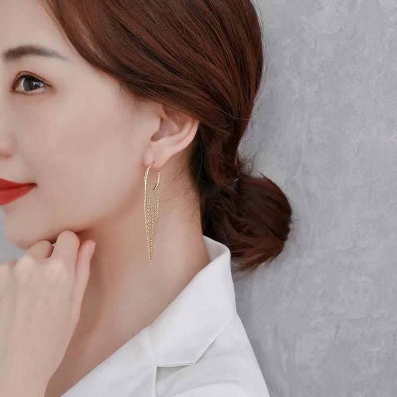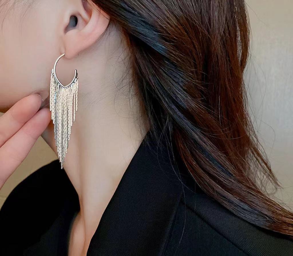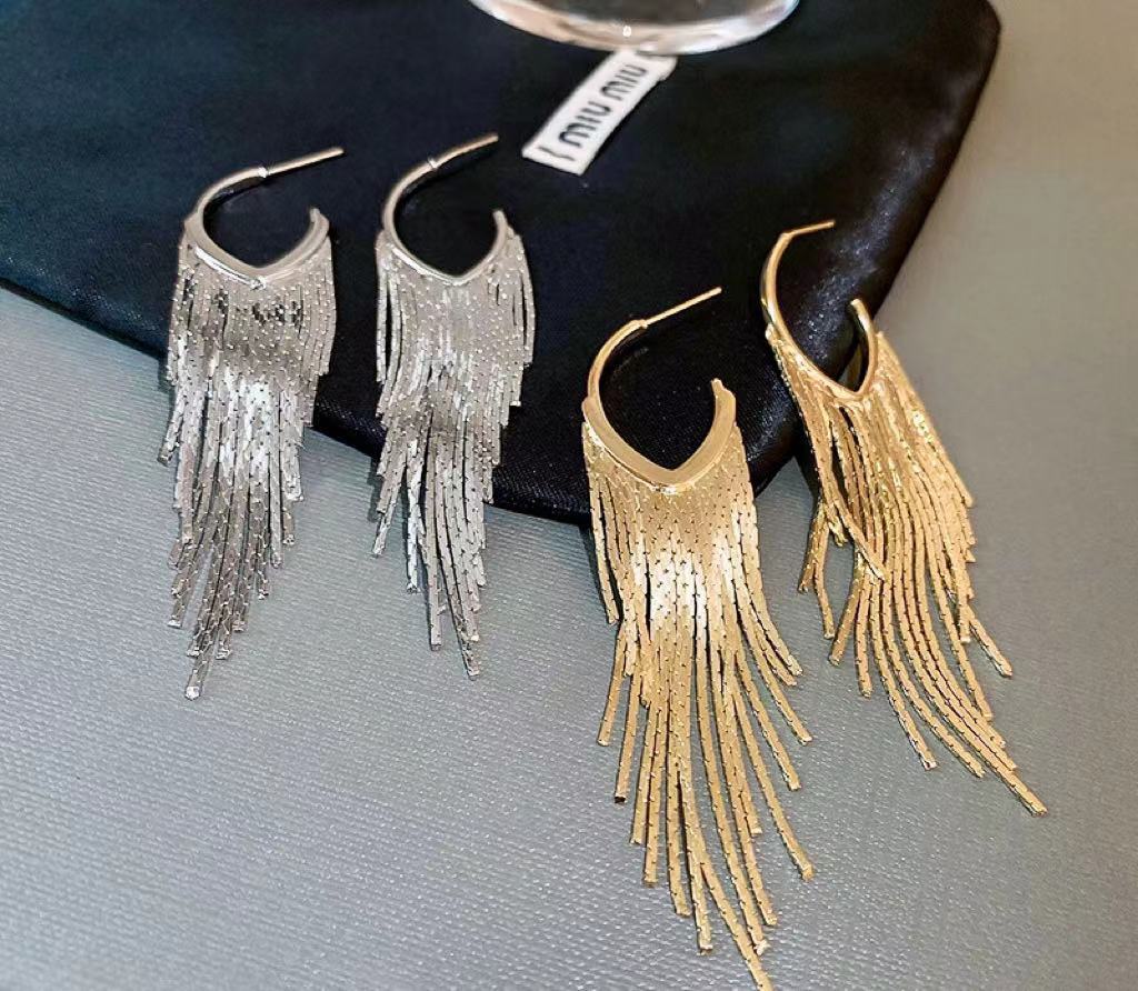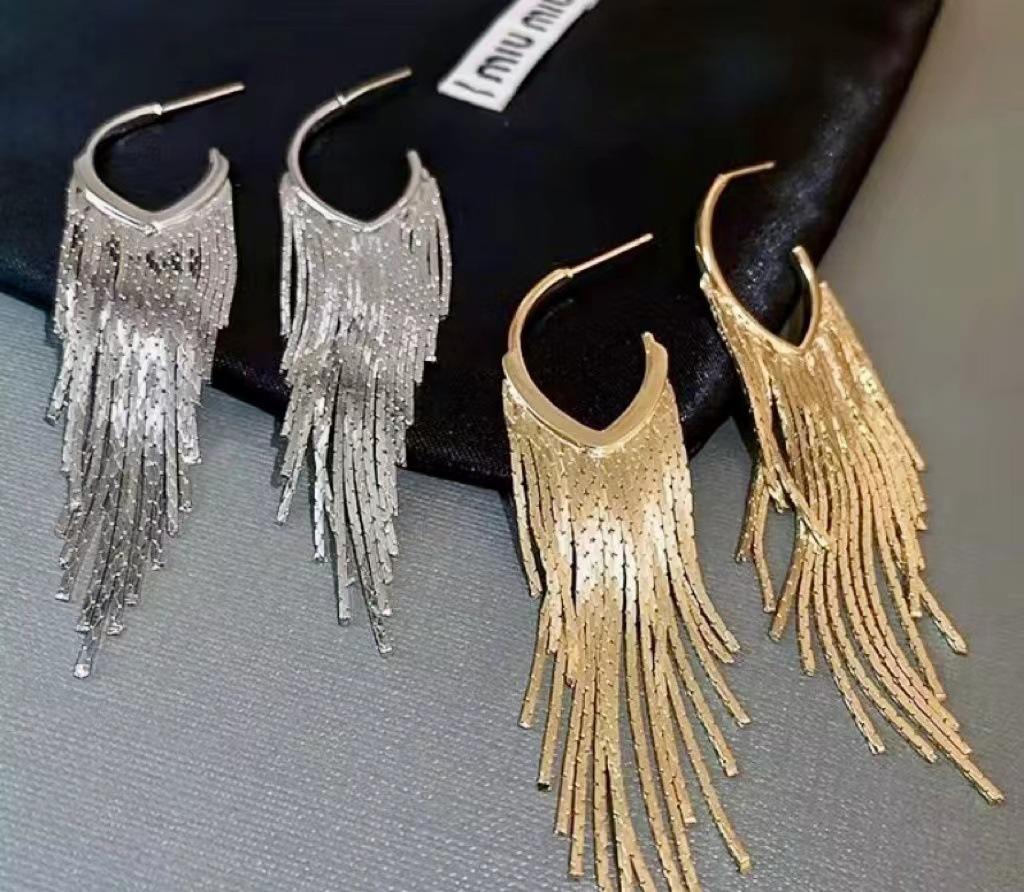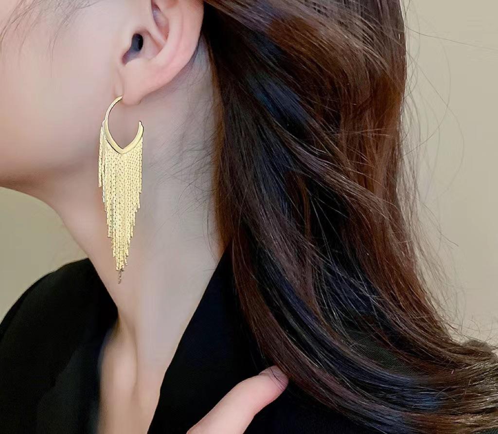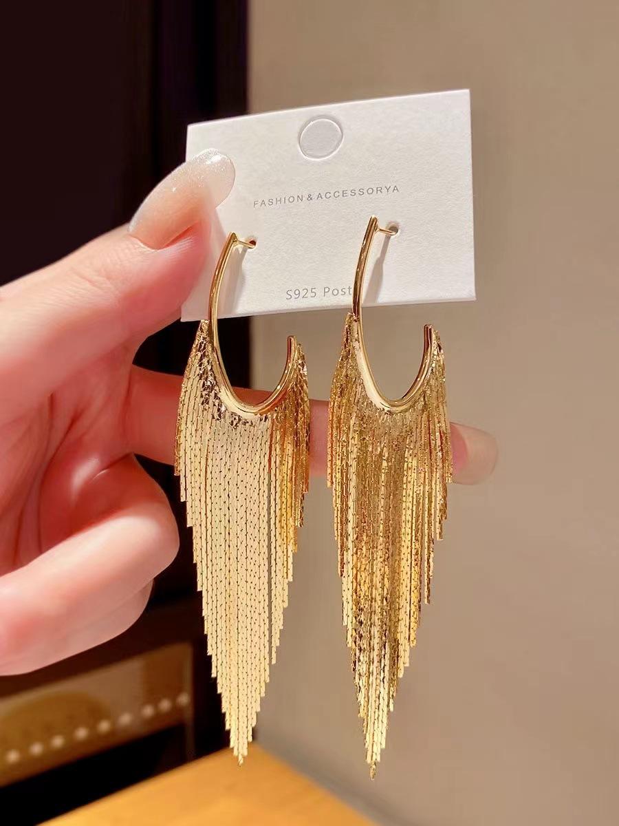 Nuevos pendientes largos con borlas exageradas de estilo festivo, estilo femenino, ligeros, de lujo, a la moda, de metal nicho.