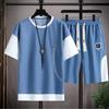 Traje de hombre con camiseta de manga corta, traje de verano fino con estampado de gofres, ropa a juego, moda masculina atractiva, deportes y ocio.