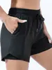 Pantalones cortos deportivos de verano de cintura alta y secado rápido para mujer, holgados, de doble capa, antideslizamiento, de dos piezas, para correr, yoga y fitness.