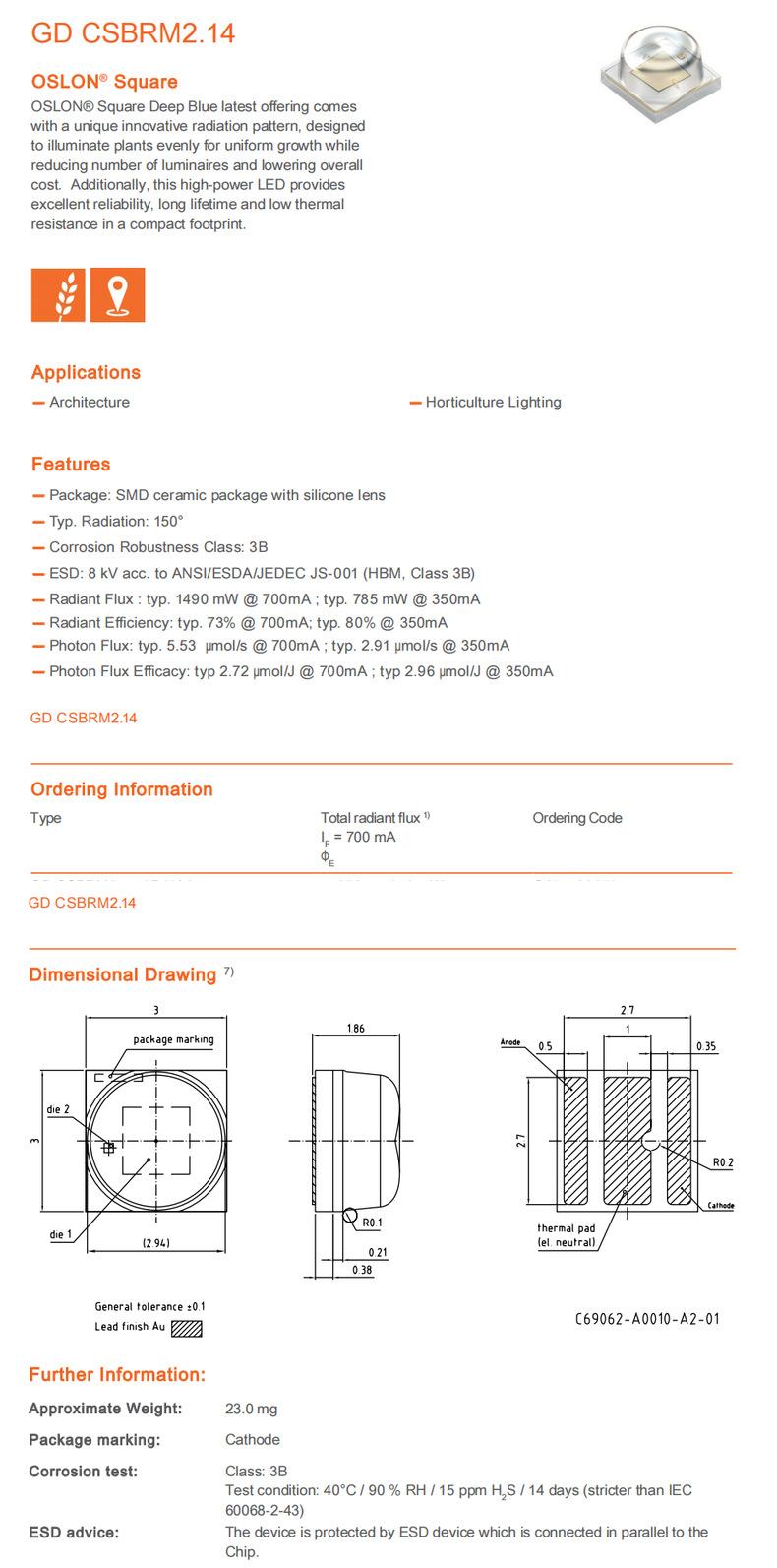 OSRAM Cuentas de Luz de Color 3030 gdcsbrm2145w Blu-ray 450nmosramosramoslonsquare
