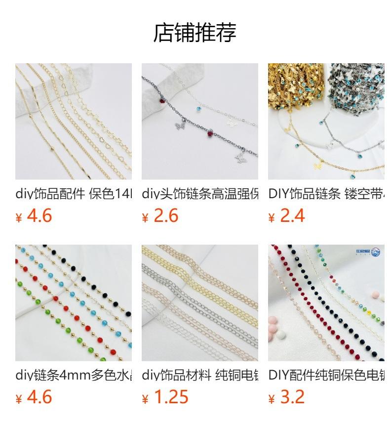 Accesorios de joyería diy cadena de cobre puro 3-5mm clip de cristal plano cadena de perlas tocado horquilla collar pulsera material