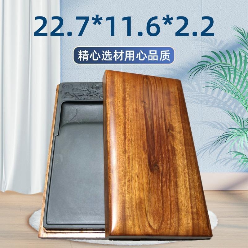 Esta piedra está tomada del material del viejo pozo costilla, el frente es material de fondo puro, fino y liso con fuerte refracción, buena textura debajo, finamente tallada a mano, con la composición de Longze Tianxia, un tintero práctico con forma de regalo, y viene con una caja excavada de madera de alcanfor.