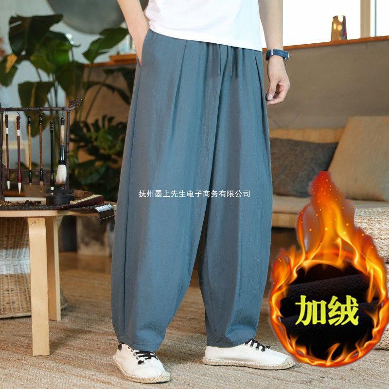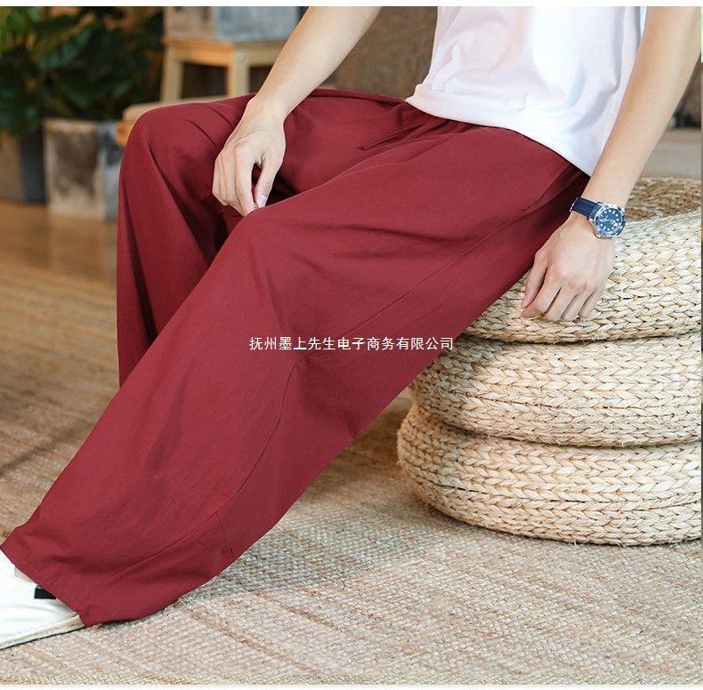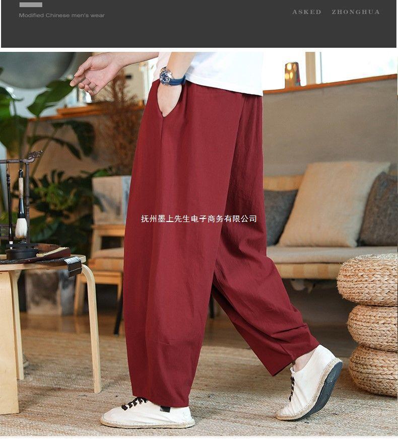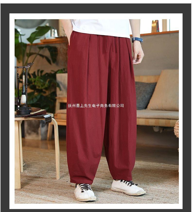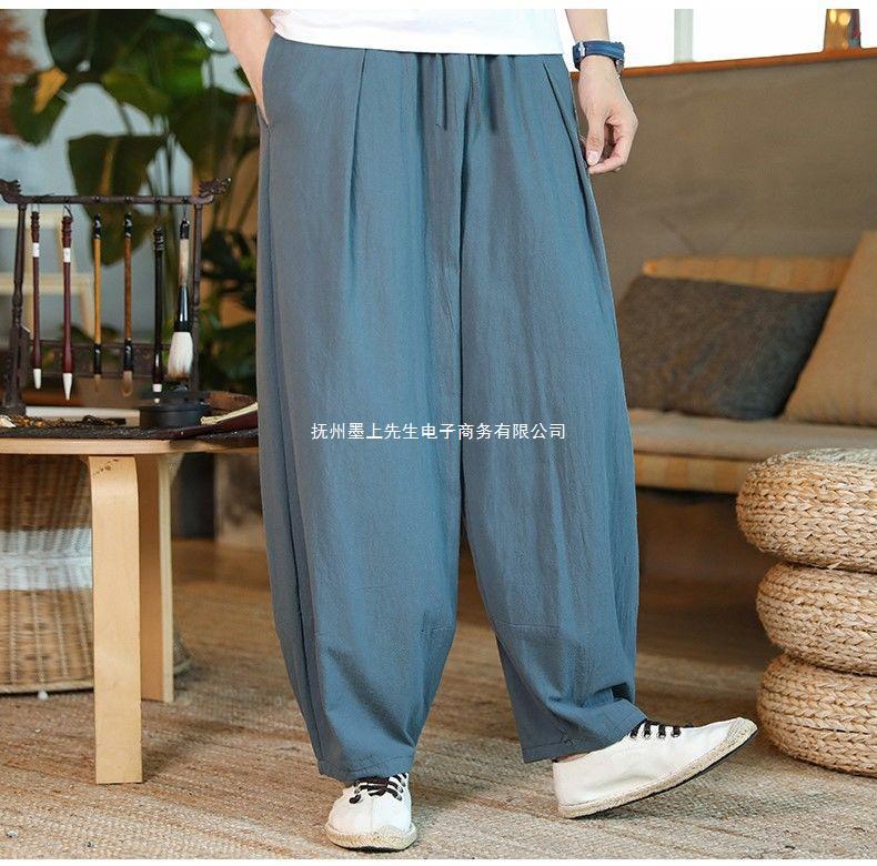Pantalones largos de lino fino estilo chino de primavera y verano para hombre, talla grande, bombachos de pierna ancha, algodón y lino, casuales, tipo harlan
