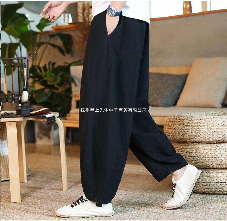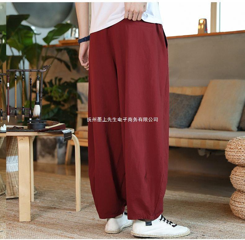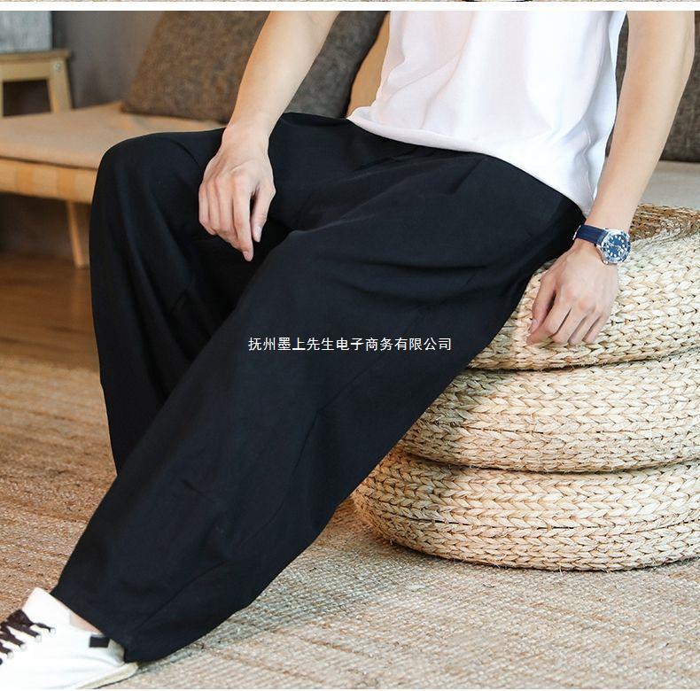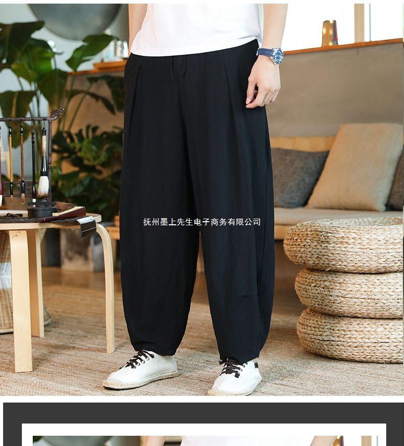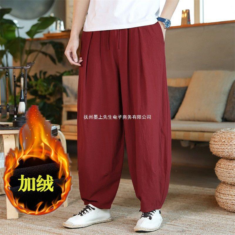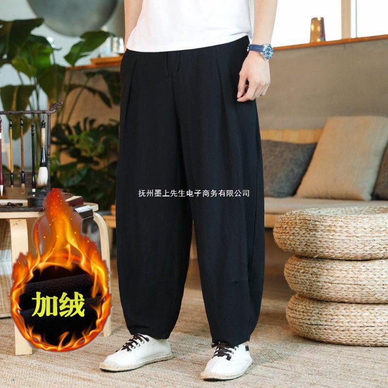 Pantalones largos de lino fino estilo chino de primavera y verano para hombre, talla grande, bombachos de pierna ancha, algodón y lino, casuales, tipo harlan