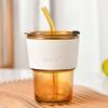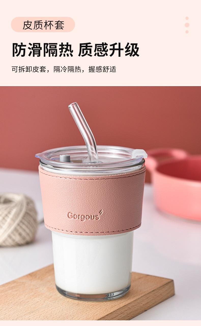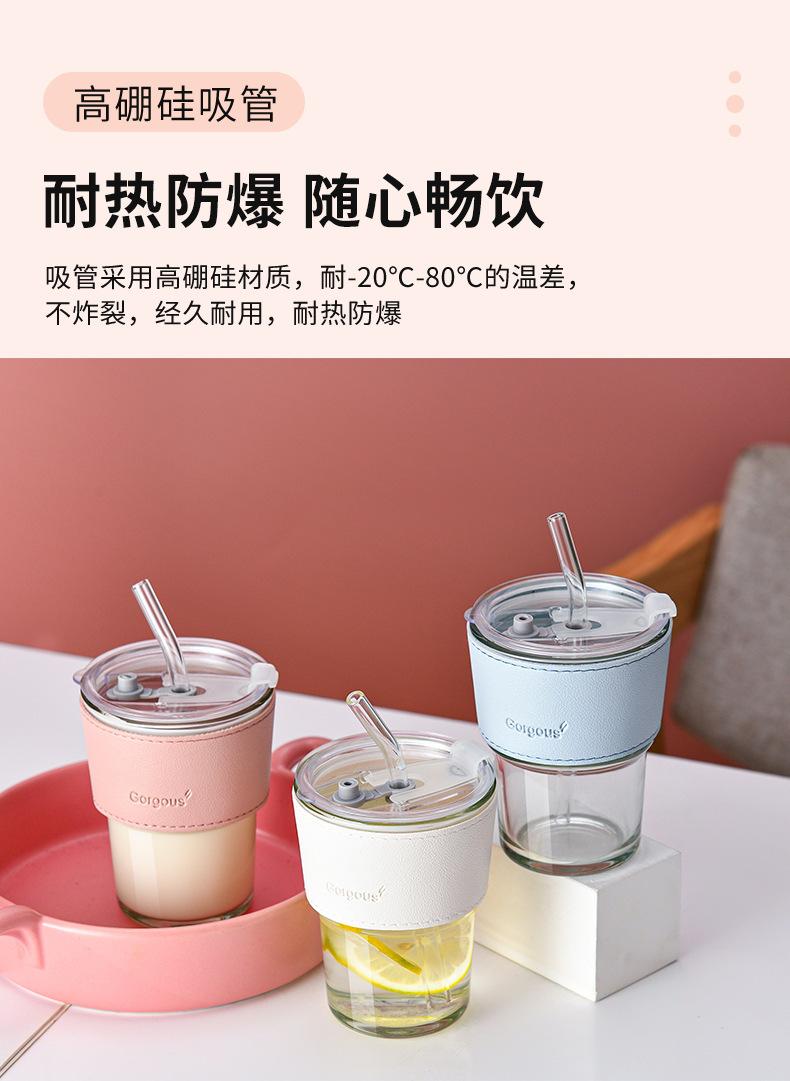 Taza para Pareja de Celebridades de Internet Vaso de Bambú con Tapa y Pajita Vaso Aislado Café Resistente a Altas Temperaturas Portátil Vaso de Agua Regalo
