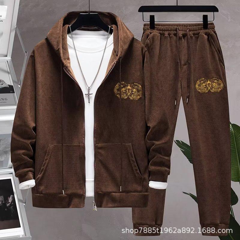 Traje grueso con forro polar de invierno de alta calidad transfronterizo nuevo para hombre, suéter con capucha, pantalones de algodón, traje deportivo informal y cálido