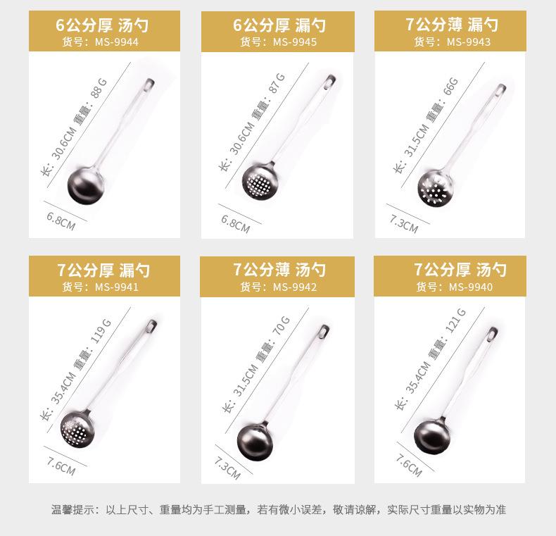 7cm thick soup spoon, 7cm thick colander, 7cm thin colander, 7cm thin spoon, 6cm thick soup spoon, 6cm thick colander