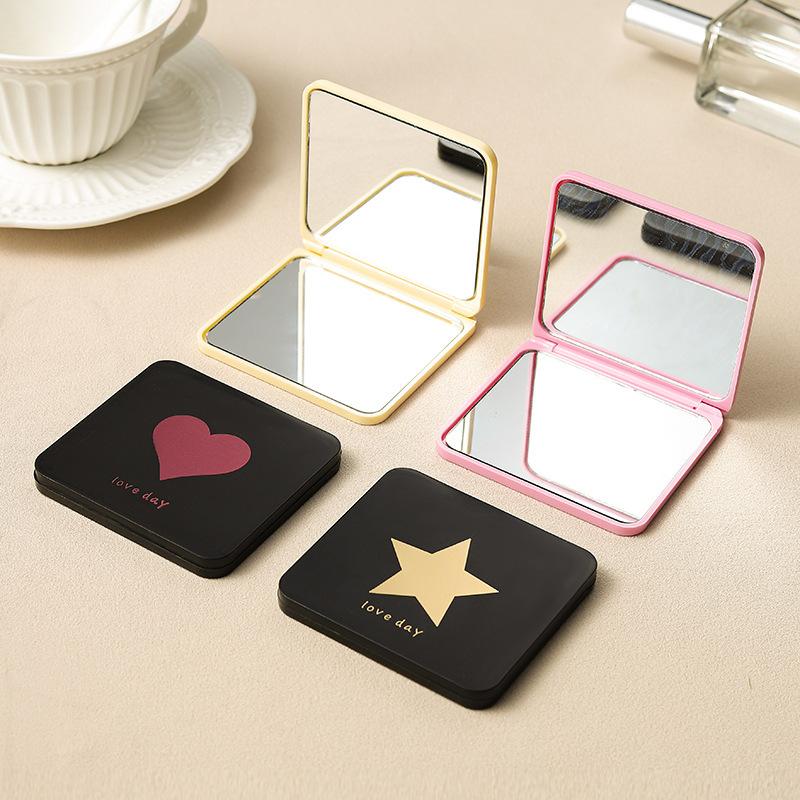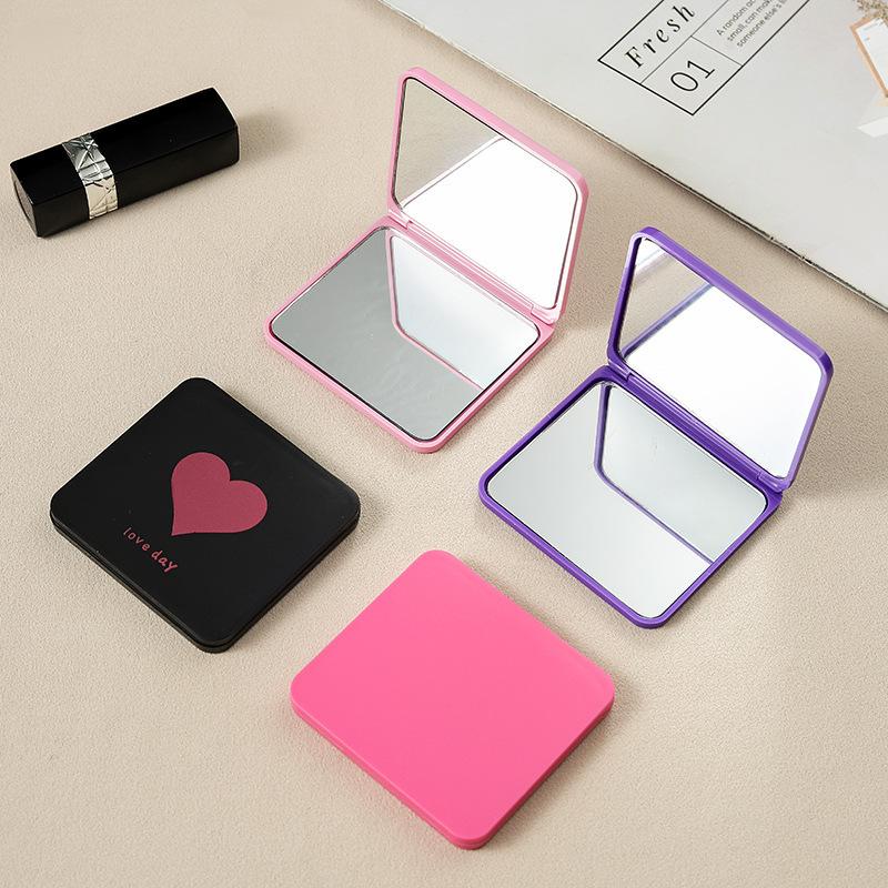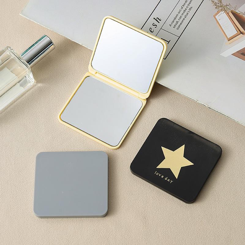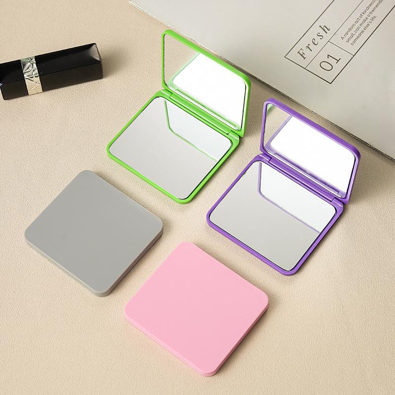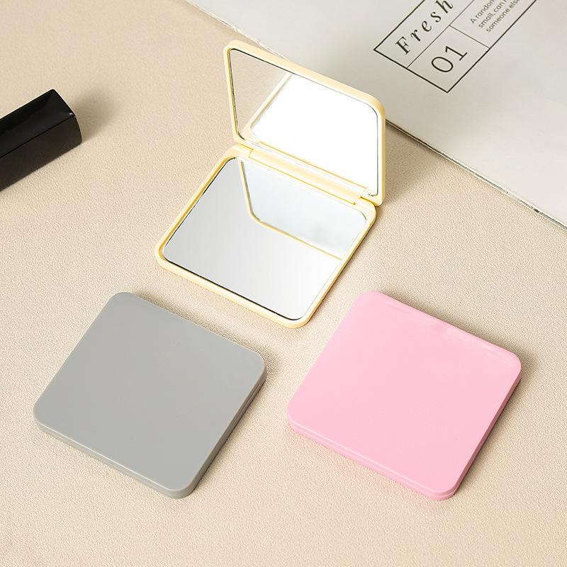 Nombre del producto: Espejo de maquillaje plegable de doble caraCantidad de embalaje: 400 piezasPeso del producto: 0,05 kgTamaño del producto: 7.2*6.6cmMaterial del producto: espejo + plástico