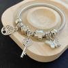 Pulsera para Mujer Estilo Panjia Nuevo Estilo DIY con Cuentas Árbol de la Vida Llave con Incrustaciones de Diamantes Versátil Ajustable Pulsera de Novia