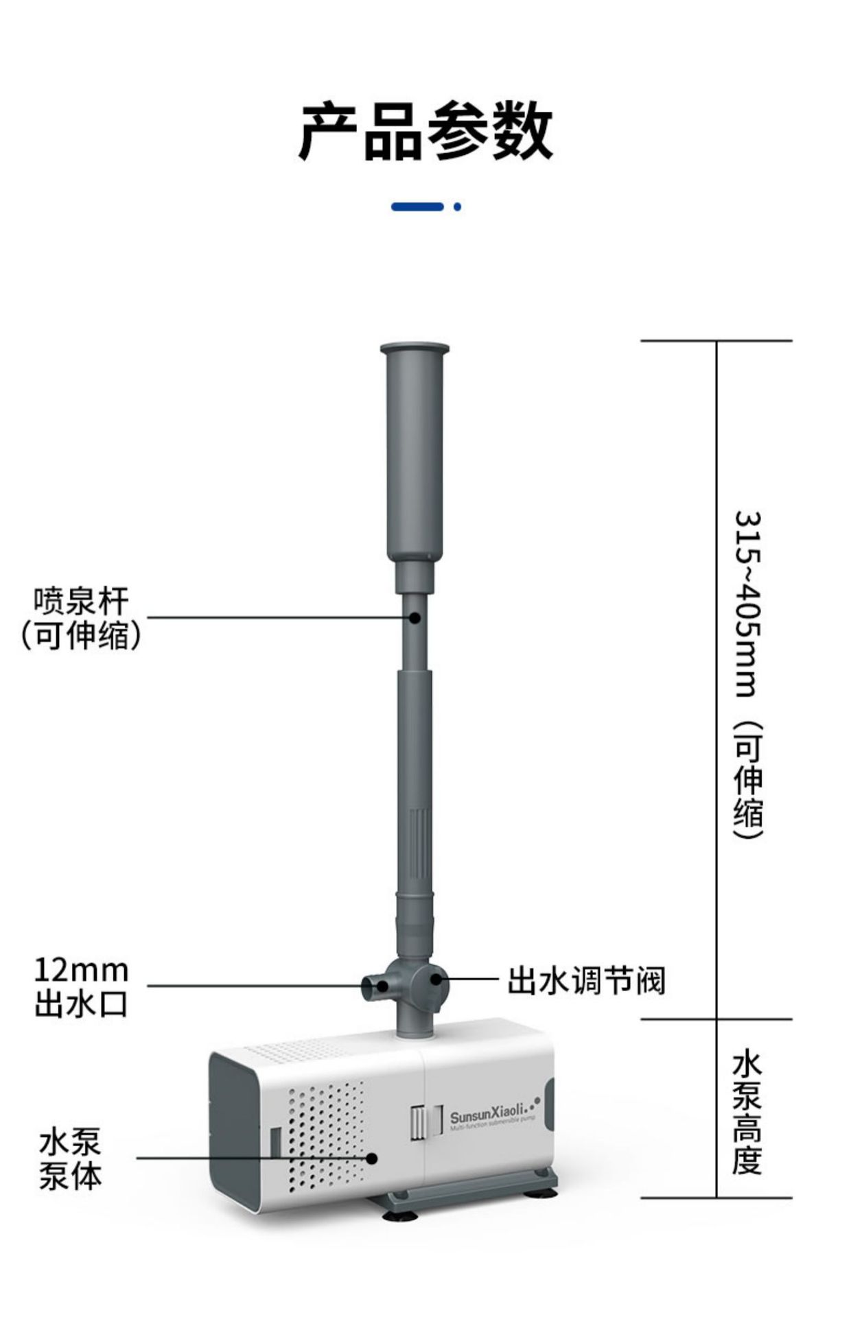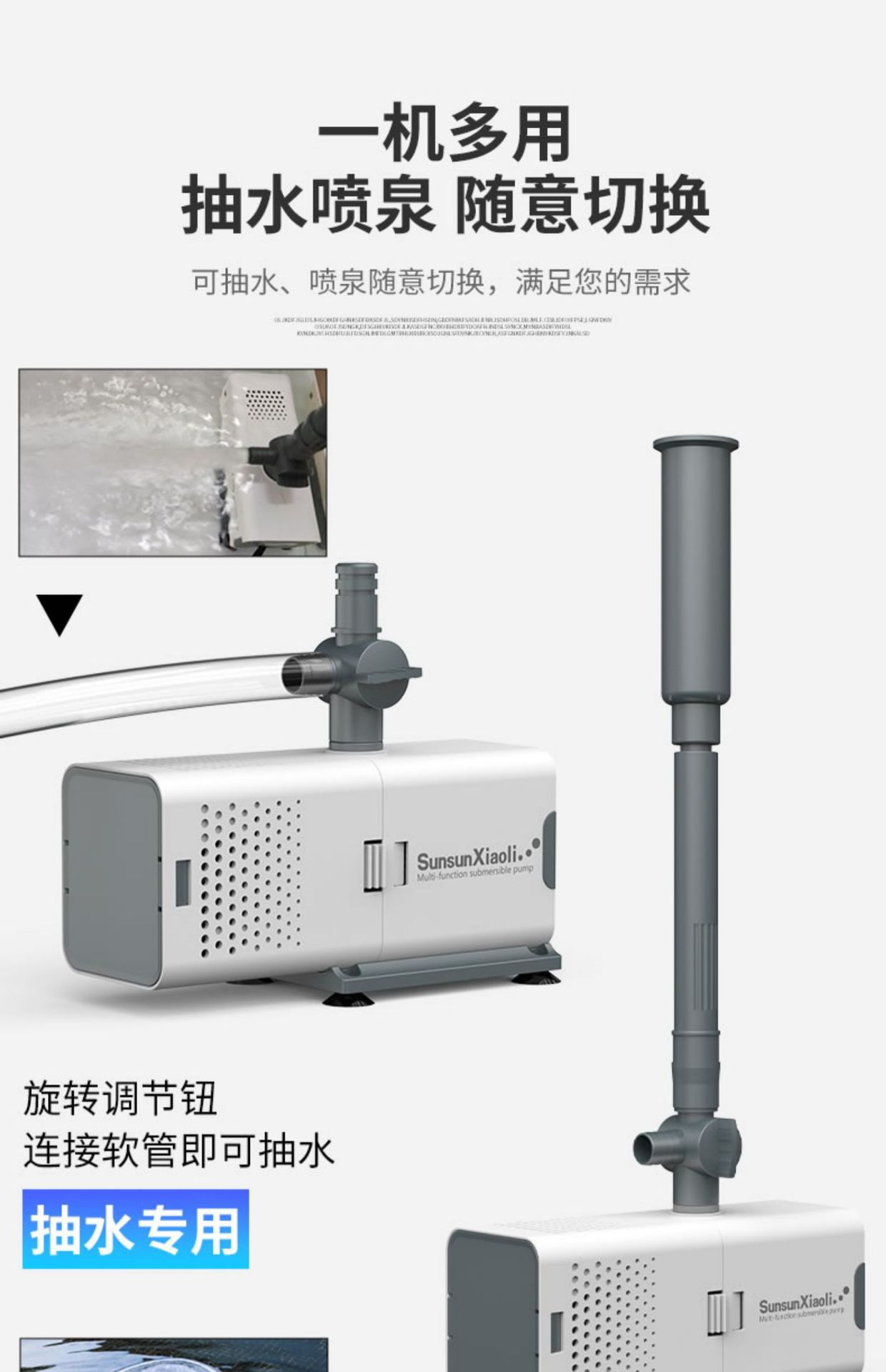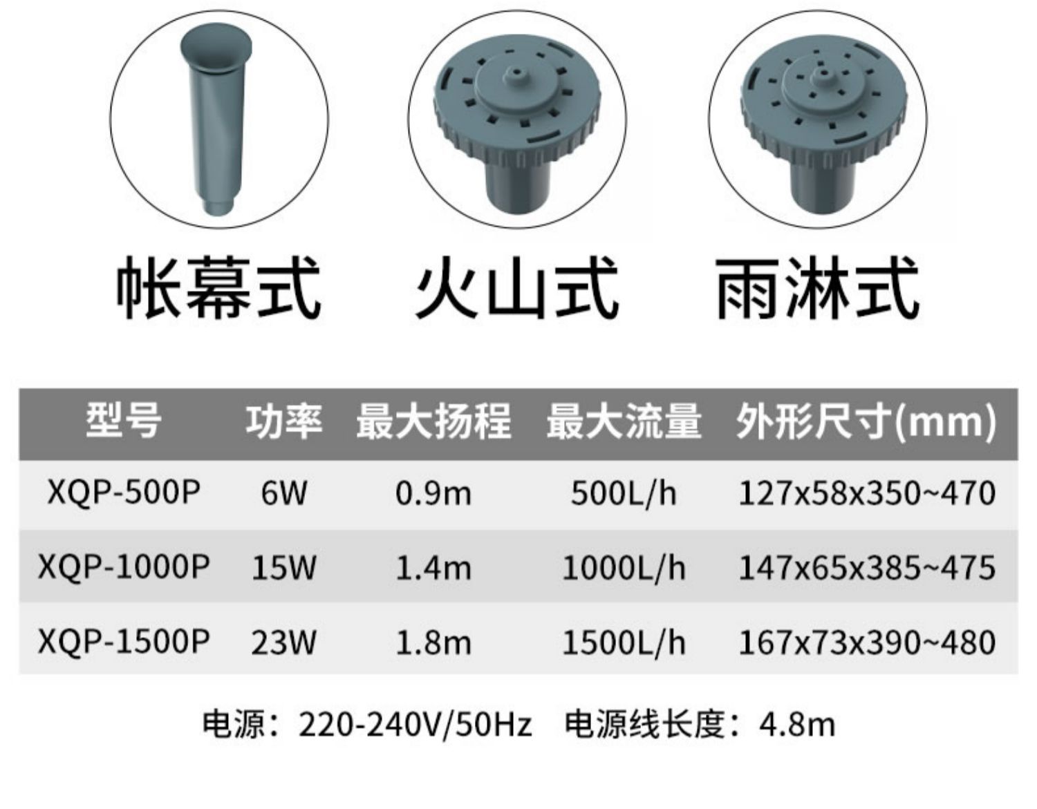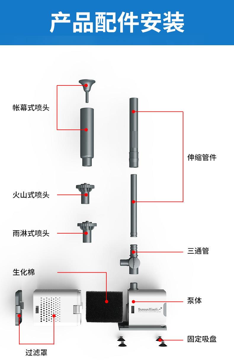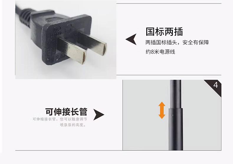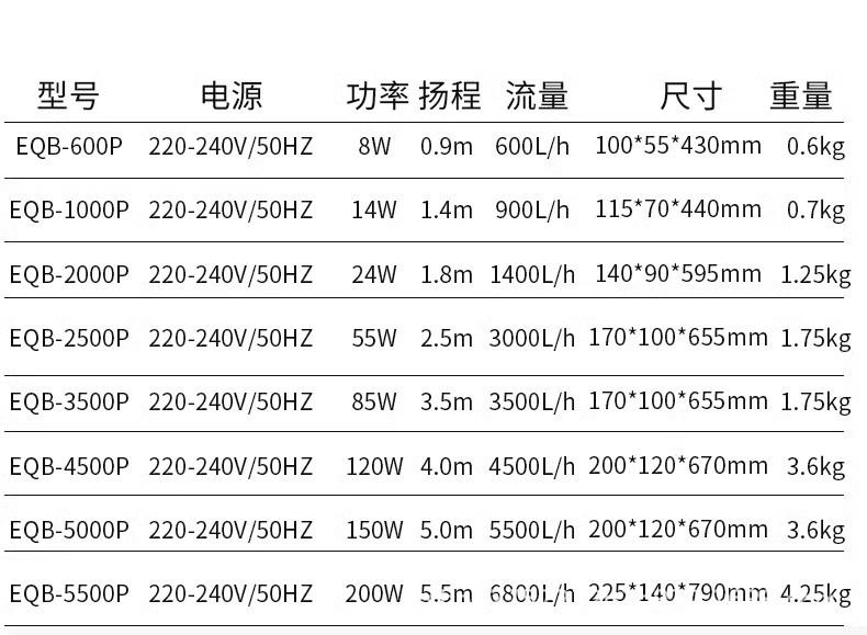 EQB-600P 8W fountain pump (suitable for water depth below 30cm), EQB-1000P 14W fountain pump (suitable for wat...