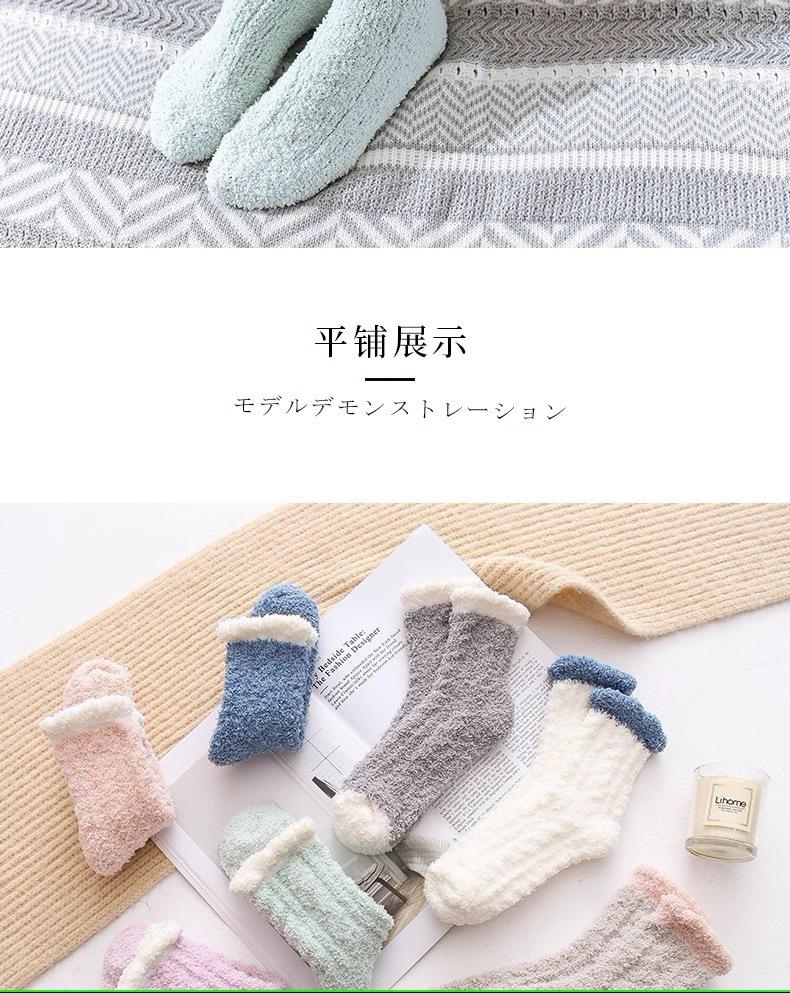 Calcetines de lana coral para mujer, otoño e invierno, largos, con forro polar, gruesos, hasta la mitad de la pantorrilla, para confinamiento, cálidos para dormir en casa