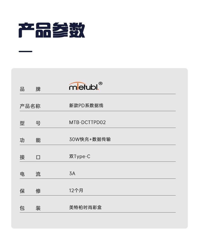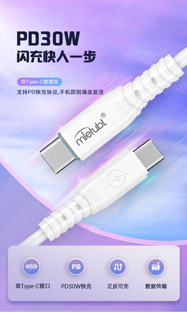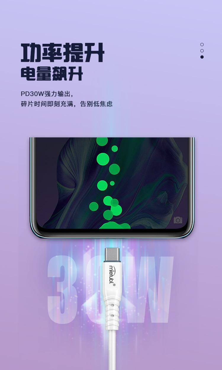 Cable de datos Meitbo TIPO C PD30W de carga rápida, compatible con teléfonos móviles y tabletas Apple y Android.