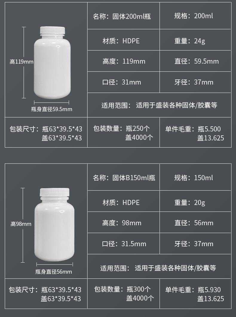 Botella de plástico transparente sellada de 15 50 100 ml con tapa, botella pequeña, botella vacía para muestra sólida, desechableExpertos industriales eligen botella de 50 g de polvo para sarpullido por calor para niños, botella de PE para talco para bebé, botella de plástico cuadradaFabricante botella de 40 ml para tabletas botella secundaria para polvo de gránulos sólidos boca ancha mayoreo plástico transparente botella para cápsulasBotella de plástico PET transparente sólido muestra de cebo en polvo botella marrón sellada tapa dorada y plateada boca ancha botella de embalajeBotella de cápsulas para mascotas marrón de 5 oz, botella para pastillas, tabletas, melatonina, gomitas suaves, botella sólida blanca, tónico de tuckahoe, botella de producto para el cuidado de la saludBotella de plástico pequeña para medicamentos 40 80 200 ml cápsula sólida polvo tableta botella vacía medicamento para peces botella a prueba de luz