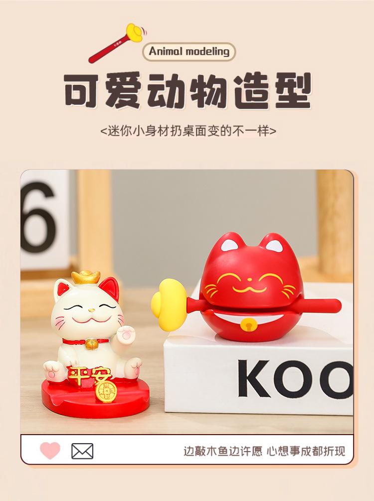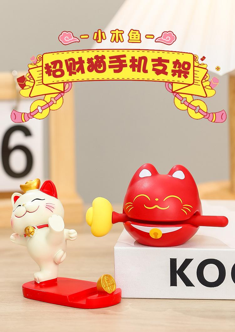 Compra Soporte creativo para teléfono móvil de gato de la suerte, soporte para teléfono móvil para juego de ocio, decoración de escritorio, meditación, golpeando un pequeño pez de madera, pequeño regalo al por mayor en Joom.pro