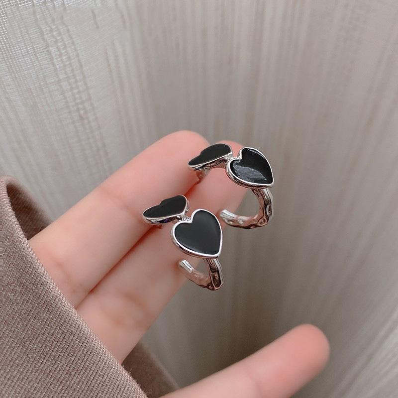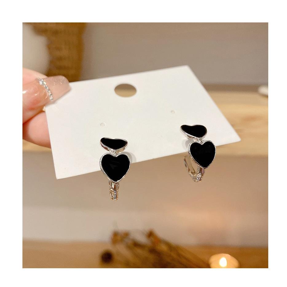 Aretes de semicírculo negros de moda con amor 2022 nuevos aretes de tuerca plateados sencillos de tendencia para mujer joyería al por mayor de Yiwu