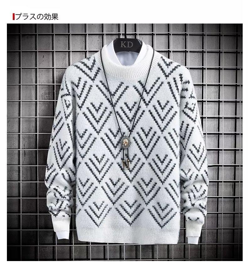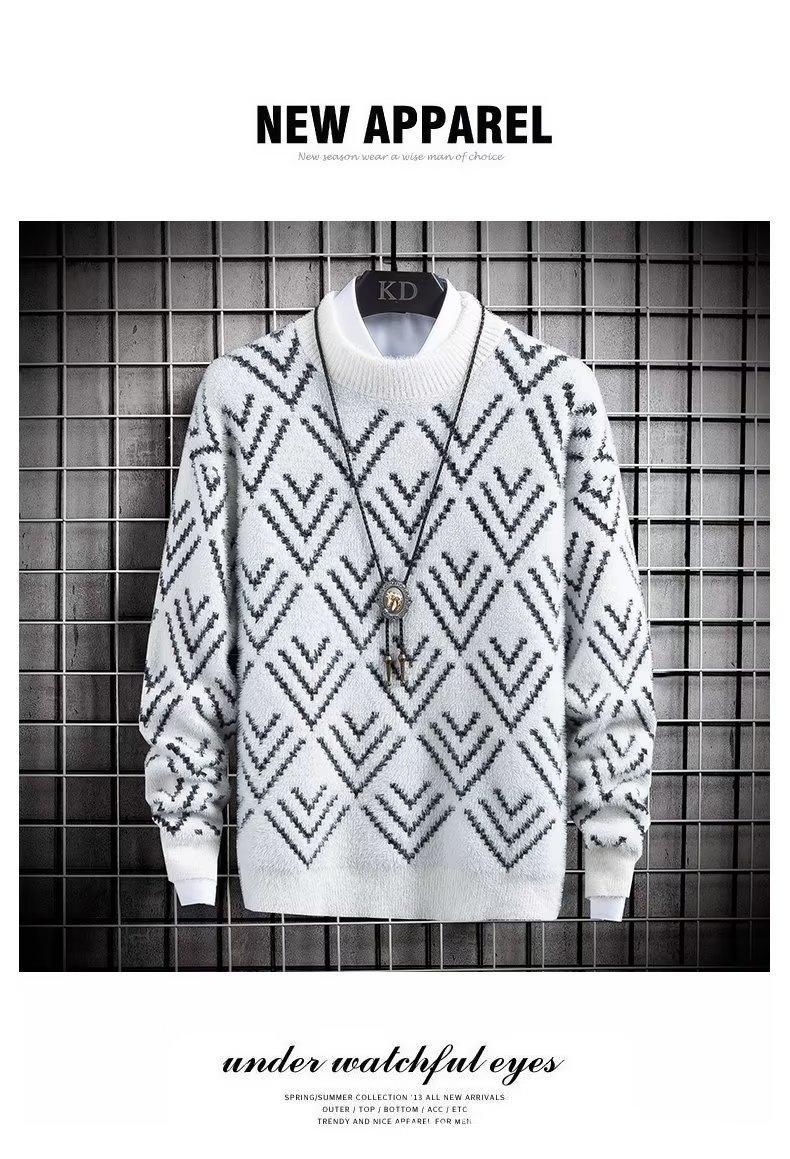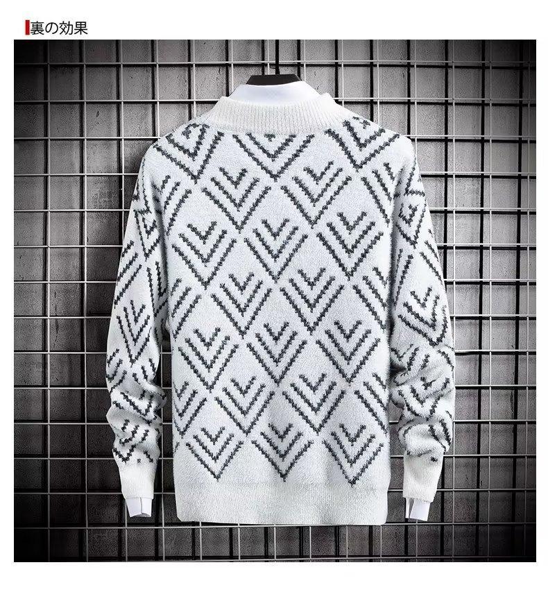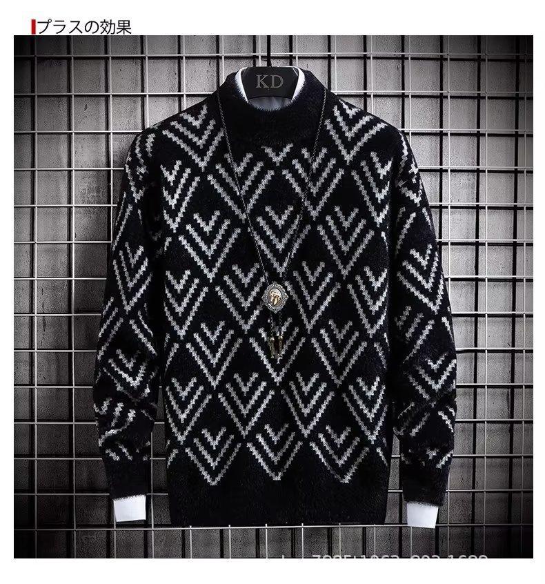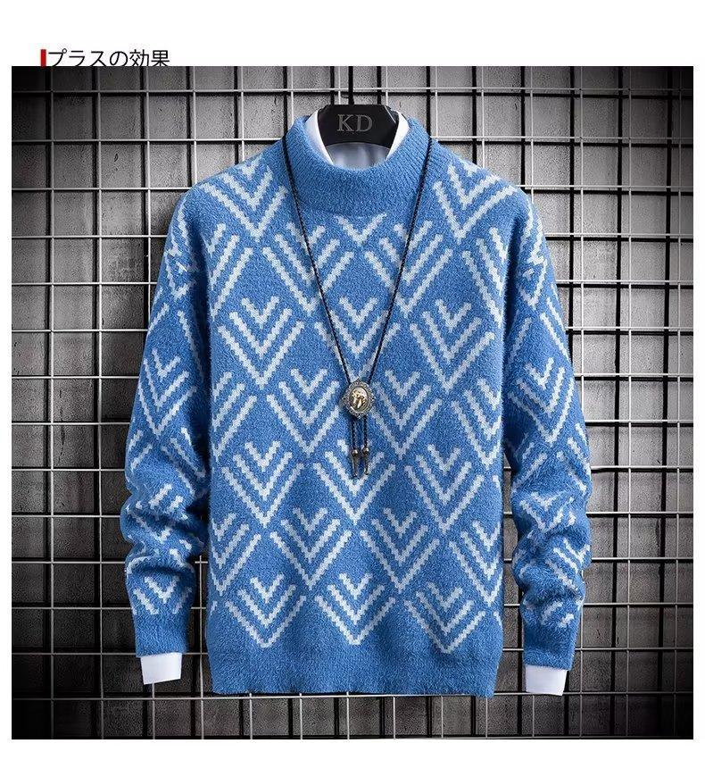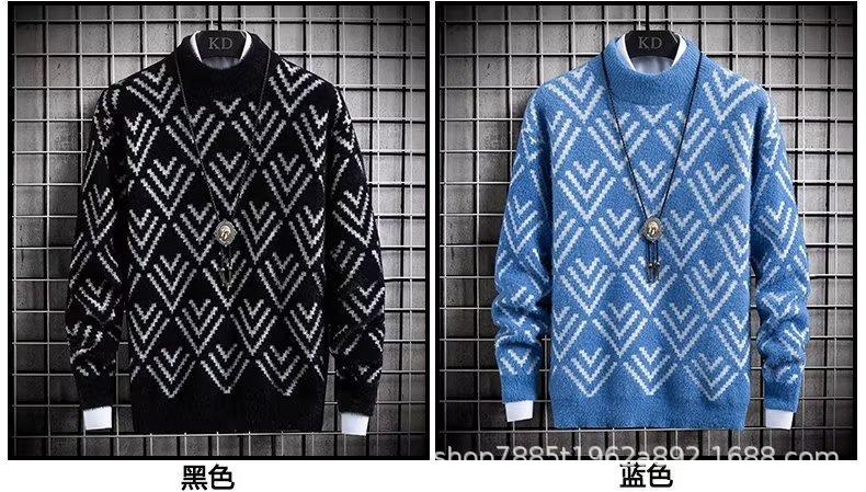 Suéter de cuello alto medio de piel de visón sintética de nuevo estilo de otoño e invierno para hombre, suéter casual de manga larga de moda de estilo coreano para hombre.
